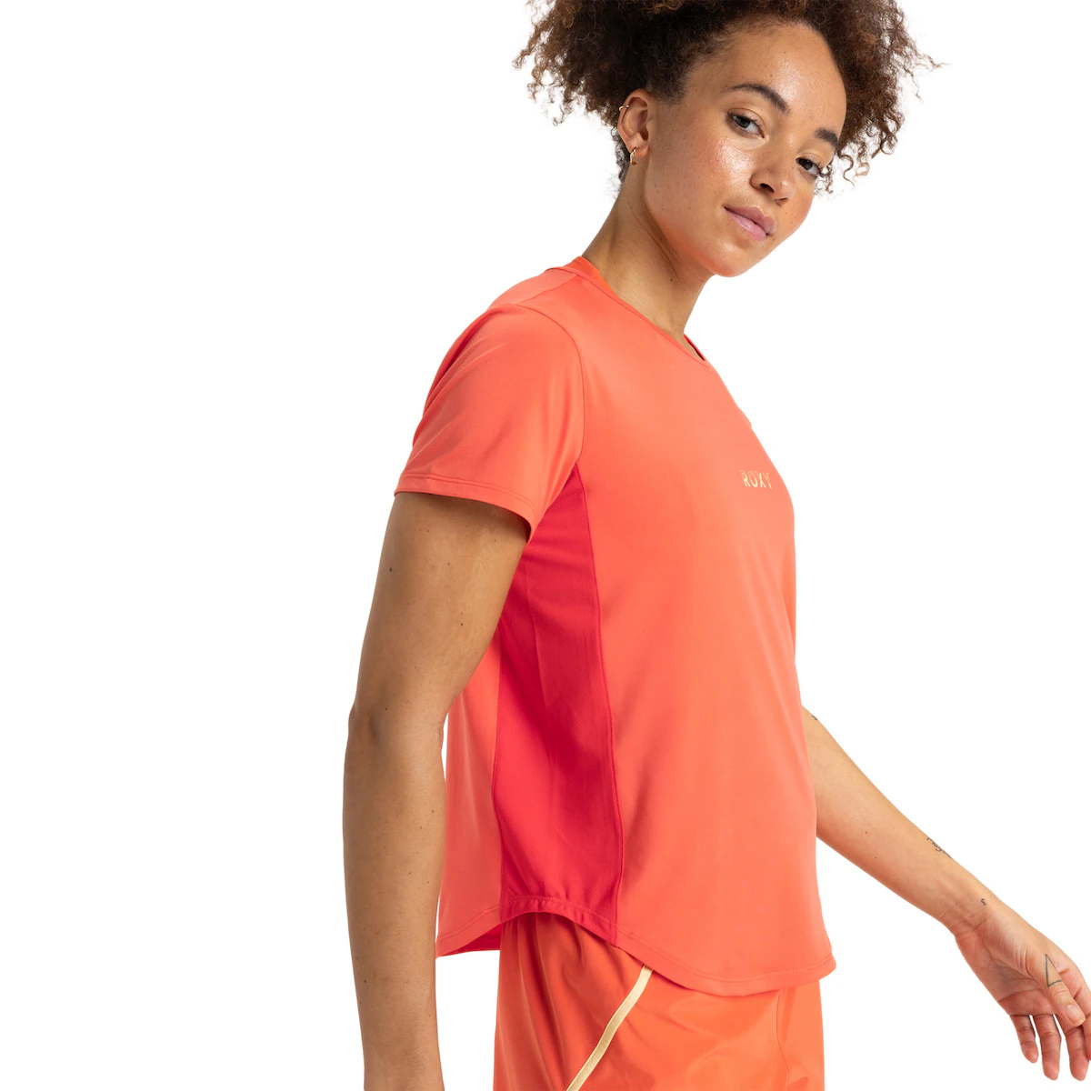 Футболка с коротким рукавом для женщин. Особенности включают: Коллекция: Активная, Ткань: 86% переработанный полиэстер и 14% эластан, Очень легкая и быстросохнущая ткань для ощущения прохлады во время тренировок, водоотталкивающее гидрофобное покрытие DryFlight, крой: обычная посадка, Горловина: круглая горловина, Рукава: короткий рукав, Застежка: Без открывания и Другие особенности: боковины с сетчатыми вставками для хорошей воздухопроницаемости.