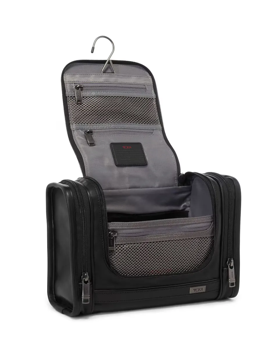 Сумка. Все необходимое в стильном кожаном дорожном чехле. Держите свои туалетные принадлежности организованными и заметными, повесив их на вешалку для полотенец или в горизонтальном положении. Мягкий. Материал изготовления: кожа. Размеры: 10,25 х 20,5 х 30 см. Вес: 0,59 кг. Объем: 6,3 литра. Основное отделение на U-образной молнии. Боковая ручка с зажимом. 2 боковых кармана на молнии. Нашивка с монограммой. Открытый карман. 3 кармана на молнии. 2 сетчатых кармана на молнии. 2 эластичные петли. Крючок. Антимикробная подкладка (помогает предотвратить размножение бактерий, плесени или грибка, которые могут оставлять запахи на поверхности ткани. Противомикробные растворы не защищают пользователей или других людей от бактерий, вирусов, микробов или других патогенных организмов. Трассер TUMI. Гарантия 5 лет.