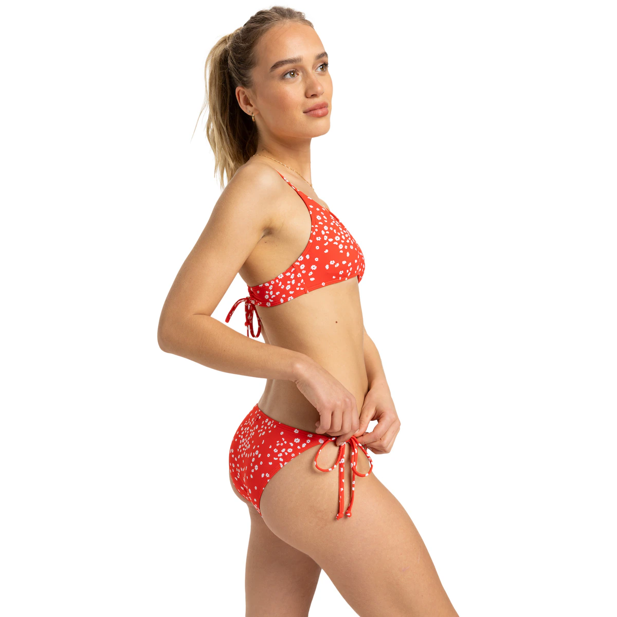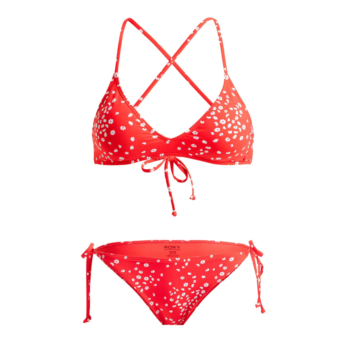 Женский двухсекционный набор для ванной комнаты. Особенности включают: Коллекция: PT Beach Classics, Ткань: эластичная ткань, мягкая и прочная, смесь 85% переработанного полиэстера, 15% эластана, Дизайн: Атлетический треугольник, Поддержка: нормальная поддержка, Набивка: съемные прокладки, Ремни: регулируемые лямки с завязкой, Застежка: Застежка с завязками, Размер чашки: Лучше всего подходит для размера чашки A/B/C, Покрытие: Уменьшенное покрытие сзади, Размер: Средняя посадка, Бренд: Резиновая пластина ROXY, Другие особенности: Поперечные бретели сзади для лучшей поддержки во время движения и Внешний вид изделия может варьироваться в зависимости от ситуации с принтом.