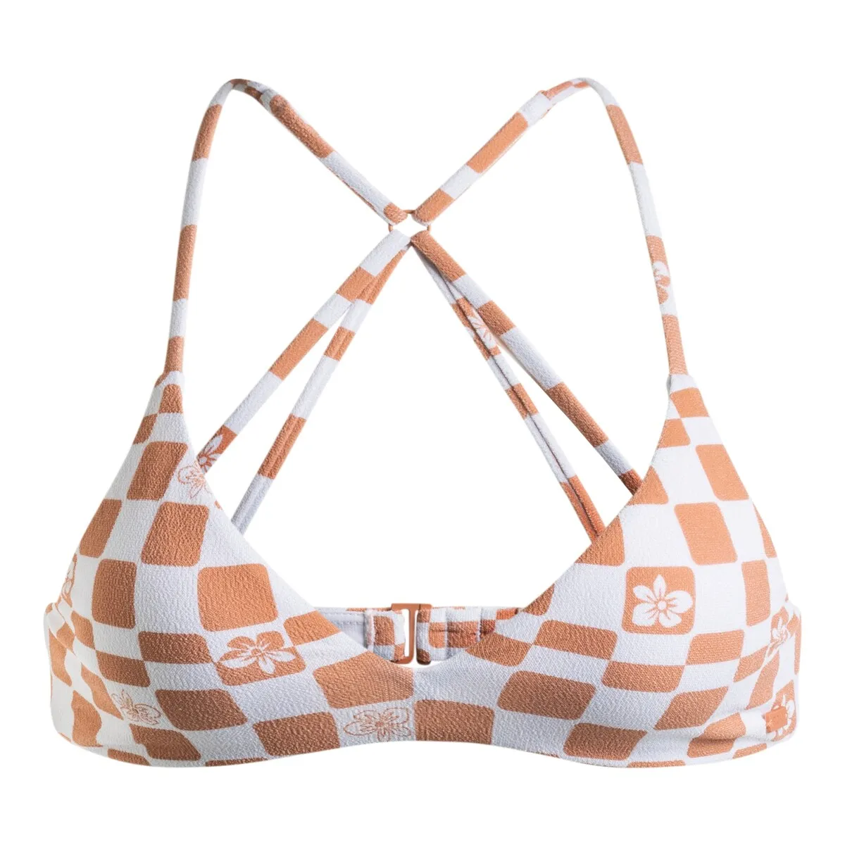 Женский треугольный топ бикини. Особенности включают: Ткань: мягкая махровая. Прочный и эластичный. Смесь эластана и переработанного нейлона. Конструкция: треугольная конструкция. Воротник: дизайн с вырезом горловины. Лямки: регулируемые лямки с завязкой. Застежка: застежка-крючок с 3 отверстиями для регулировки длины спинки. Охват: умеренный охват. Опора: обычная опора и Набивка: съемная набивка.
