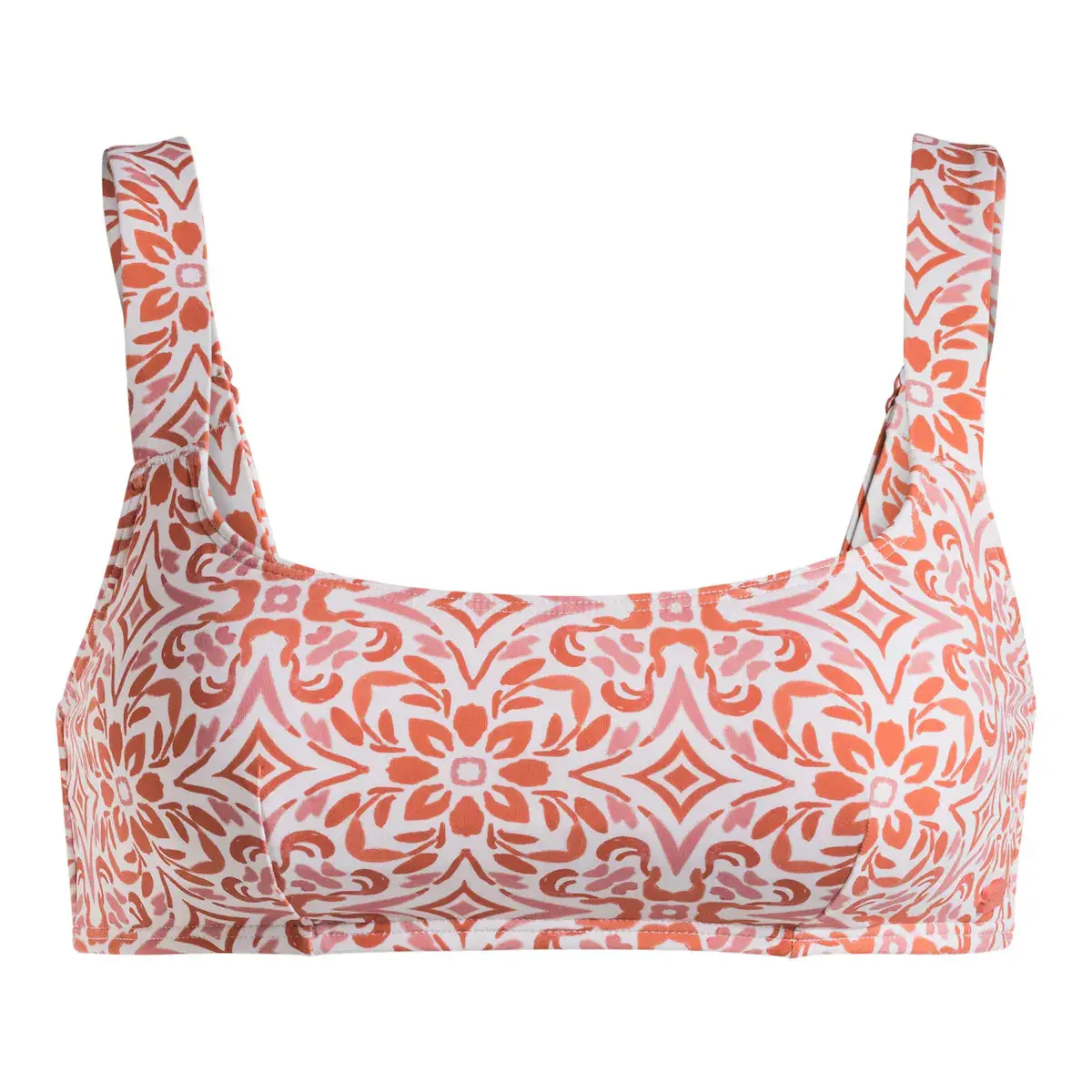 Женский топ бикини на косточках. Особенности включают: Коллекция: Фресковая плитка. Мягкая ткань. Прочный и эластичный изготовлен на 87% из переработанного нейлона с 13% эластана. D чашка на косточках. Шею. Высокая поддержка. Съемная набивка. Регулируемые ремни с кольцами и бегунками. Крючок-бабочка для лучшего сцепления и безопасности. Размер чашки: лучше всего подходит для D. полное покрытие. Подкладка: прочная сетка для лучшей поддержки. Бренд: резиновая пластина ROXY и другие особенности: чашки с панельной деталью для лучшего сцепления.