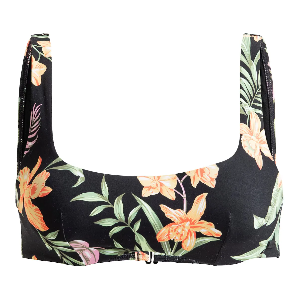 Женский топ бикини на косточках. Особенности включают: Коллекция: PT Beach Classics, Ткань: эластичная ткань, мягкая и прочная, смесь 85% переработанного полиэстера 15% эластана, Дизайн: Дизайн бюстгальтера на косточках, Горловина: круглый вырез, Поддержка: нормальная поддержка, Набивка: съемные подушечки, Ремни: фиксированные бретели, Застежка: Петля застежка, Размер чашки: Лучше всего подходит для чашки размера A,B,C, Бренд: Резиновая пластина ROXY.