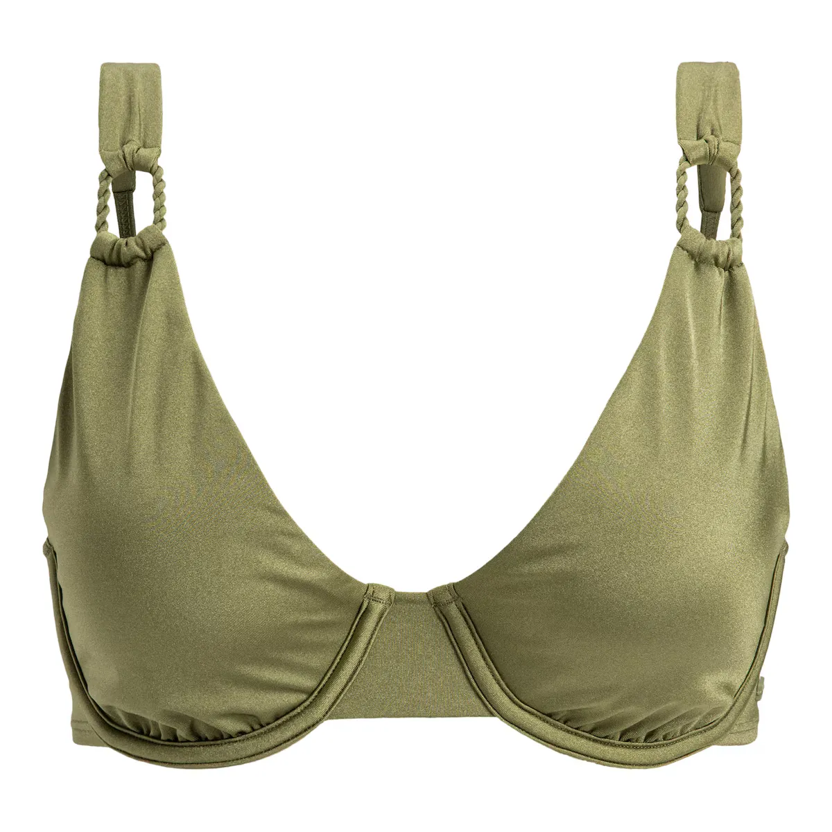 Топ бикини среднего покрытия для женщин. Особенности включают: Коллекция: Коллекция Brilo, Ткань: Блестящая ткань, эластичная, мягкая, прочная, переработанная, смесь 82% переработанного нейлона 18% эластана, Дизайн: бюстгальтер с чашкой D, Горловина: круглый вырез, Поддержка: высокая поддержка, Набивка: съемные подушечки, Бретели: широкие регулируемые бретели с косточками и ползунками, Застежка: крючок-бабочка для дополнительной поддержки и предотвращения раскрытия спины при движении, Покрытие: Средний, Размер чашки: Лучше всего подходит для размера чашки D, Марка: Резиновая пластина ROXY, Другие особенности: Косточки под чашками и прочная сетчатая внутренняя часть для улучшения поддержки.