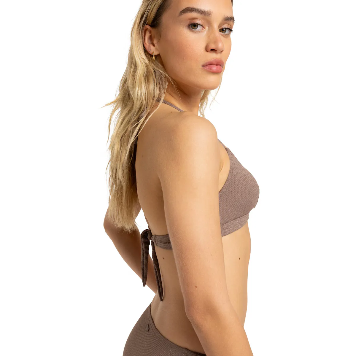 Топ бикини среднего покрытия для женщин. Особенности включают: Коллекция: Lasca Collection, Ткань: эластичная люрексовая ткань, мягкая и прочная, переработанная смесь нейлона 78% 9% нейлон 7% металл 6% эластан с текстурой, Дизайн: тройной бюстгальтер, Воротник: V-образный вырез, Поддержка: нормальная поддержка, Набивка: съемные подушечки, Ремни: регулируемые лямки с завязками, Застежка: застежка на узел, Покрытие: среднее покрытие, Размер чашки: Лучше всего подходит для размера чашки A/B/C и Бренд: Резиновая пластина ROXY.
