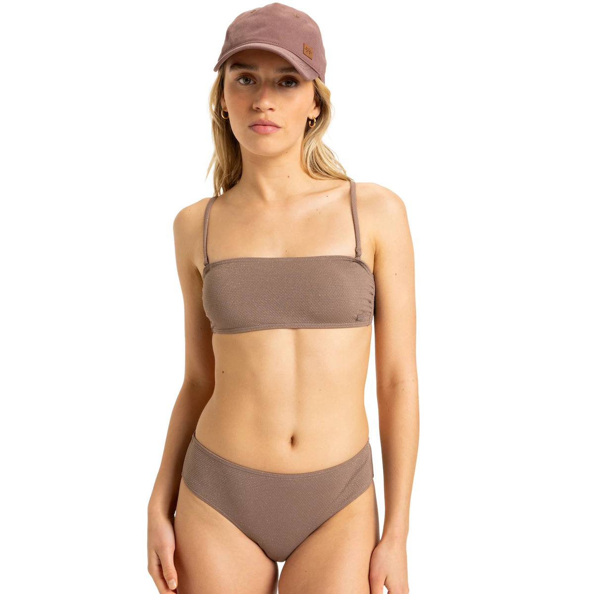Топ бикини с полным покрытием для женщин. Особенности включают: Коллекция: Lasca Collection, Ткань: эластичная люрексовая ткань, мягкая и прочная, переработанный нейлоновый смес, 78% 9% нейлон, 7% металл 6% эластан с текстурой, Дизайн: бандо, Воротник: воротник в стиле бандо, Поддержка: нормальная поддержка, Набивка: съемные подушечки, Ремни: съемные регулируемые лямки с косточками и ползунками, застежка: застежка-клипса, Покрытие: полное покрытие, Размер чашки: Лучше всего подходит для размера чашки A/B/C и Бренд: Резиновая пластина ROXY.