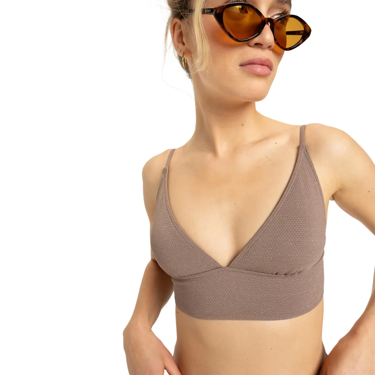 Топ бикини среднего покрытия для женщин. Особенности включают в себя: Коллекция: Lasca Collection, Ткань: эластичная люрексовая ткань, мягкая и прочная, переработанный нейлоновый смесовый 78% 9% нейлон 7% металл 6% эластан с текстурой, Дизайн: майка, Воротник: V-образный вырез, Поддержка: нормальная поддержка, Набивка: съемные прокладки, Ремни: регулируемые ремни на косточках и ползунках, Застежка: фиксированная застежка, Покрытие: среднее покрытие, Размер чашки: Лучше всего подходит для размера чашки A/B/C и Бренд: Резиновая пластина ROXY.