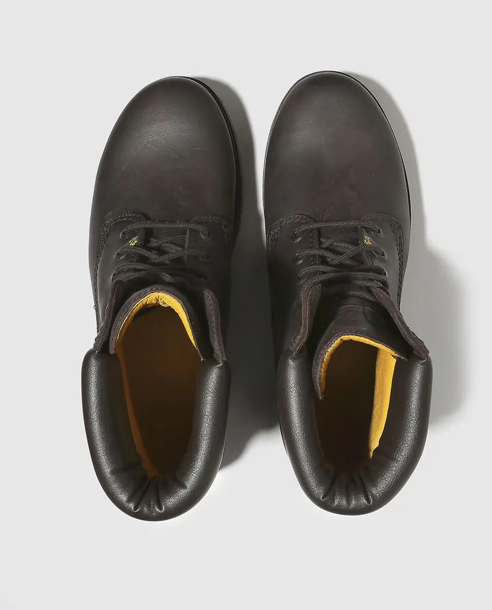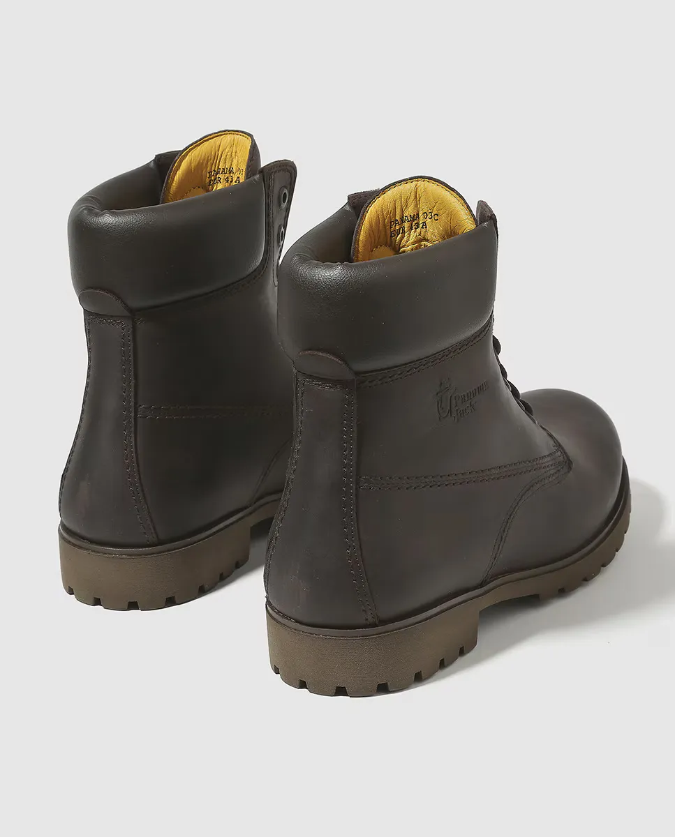 Коричневые сапоги из кожи наппа, промасленные, с мягким воротником, кружевной застежкой и резиновой подошвой. Они имеют внутреннюю подкладку и съемную стельку из мягкой кожи.