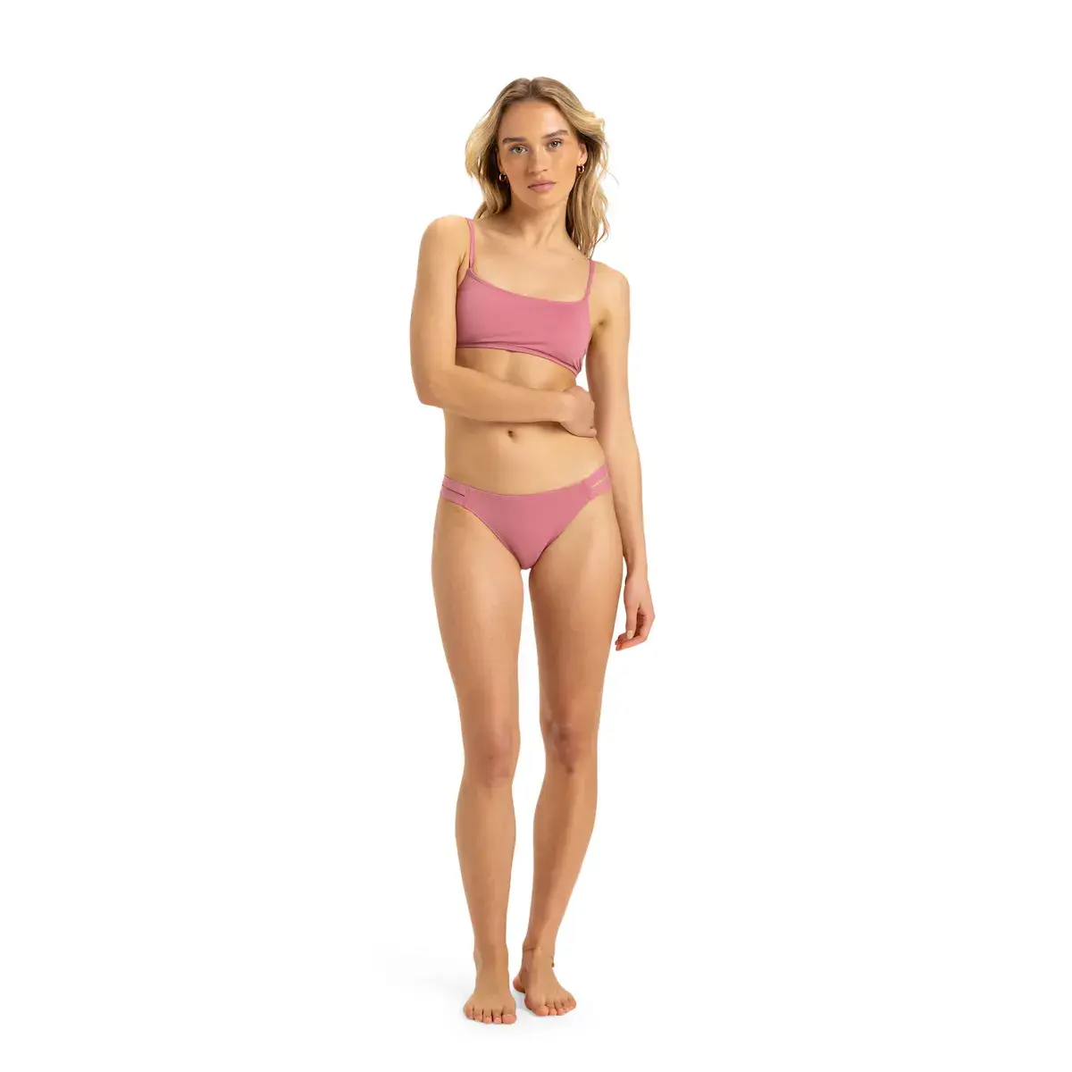 Плавки бикини среднего покрытия для женщин. Особенности включают: Коллекция: SD Beach Classics, Ткань: эластичная ткань, мягкая и прочная, смесь 85% переработанного полиэстера, 15% эластана, Талия: низкая посадка, Талия: низкая посадка, Застежка: фиксированная застежка, Покрытие: покрытие бикини, Бренд: резиновая пластина ROXY и другие детали: Небольшие сборки с обеих сторон.