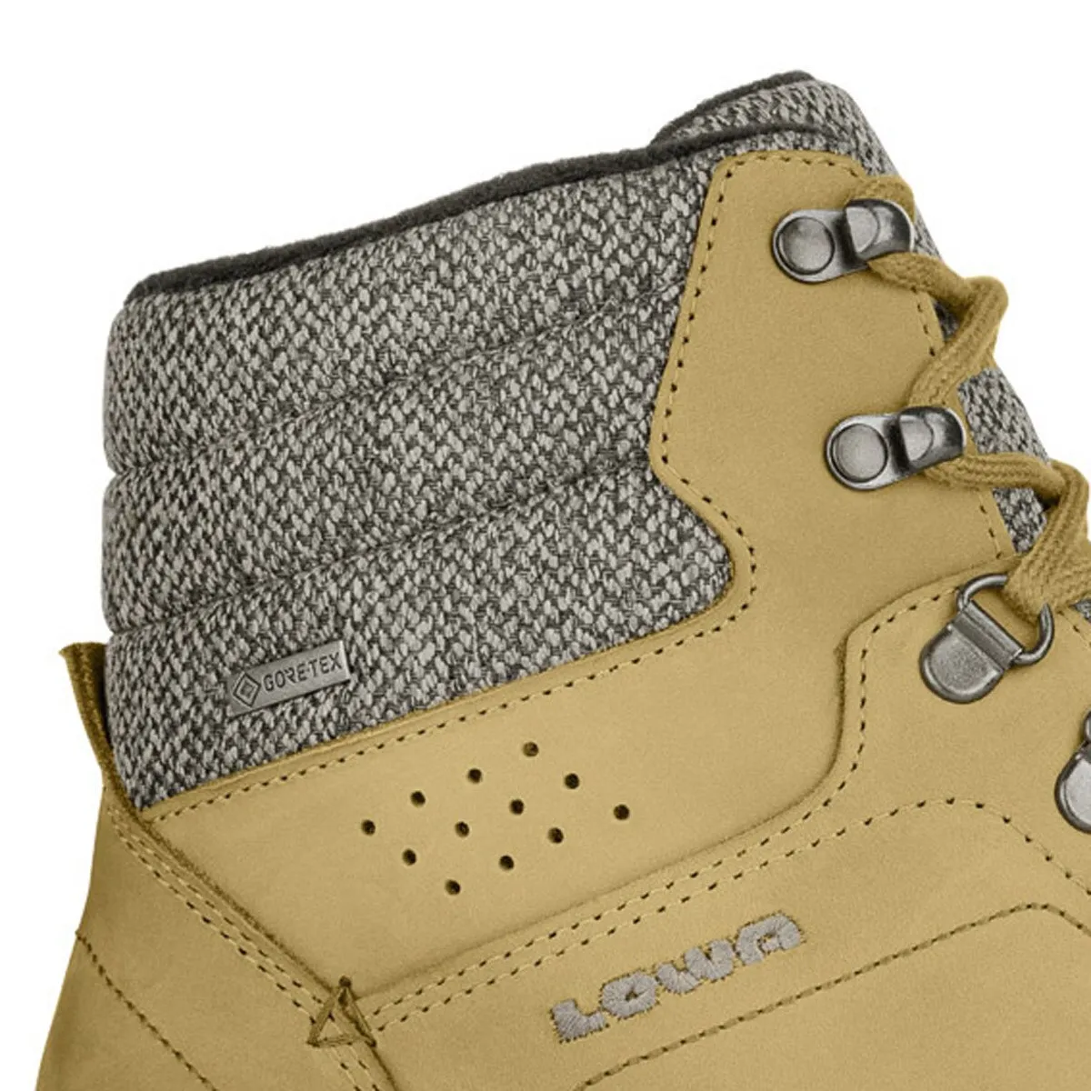 Необработанный внешний вид, мягкая сердцевина: снаружи прочная и слегка грубоватая кожа нубука обеспечивает защиту от непогоды, о которой мечтает каждый владелец. Внутри водонепроницаемая подкладка GORE-TEX Panda сохраняет ноги полностью теплыми и сухими. Эти особенности подчеркнуты инжекционной межподошвой и удобной стелькой. Кроме того, край в области пятки подошвы LOWA AL-S IV из материала TPU играет ключевую роль в создании естественных катающихся свойств обуви. Благодаря этим качествам обувь MID-CUT не только обеспечивает наилучшую функциональность, но и создает оптимальное ощущение комфорта, которое обволакивает стопу на каждом шагу. С помощью элегантных элементов дизайна, таких как мягкий вшитый твидовый воротник и современные декоративные стежки, классическая зимняя обувь стала повседневным спутником для досуга в стиле желтых ботинок.