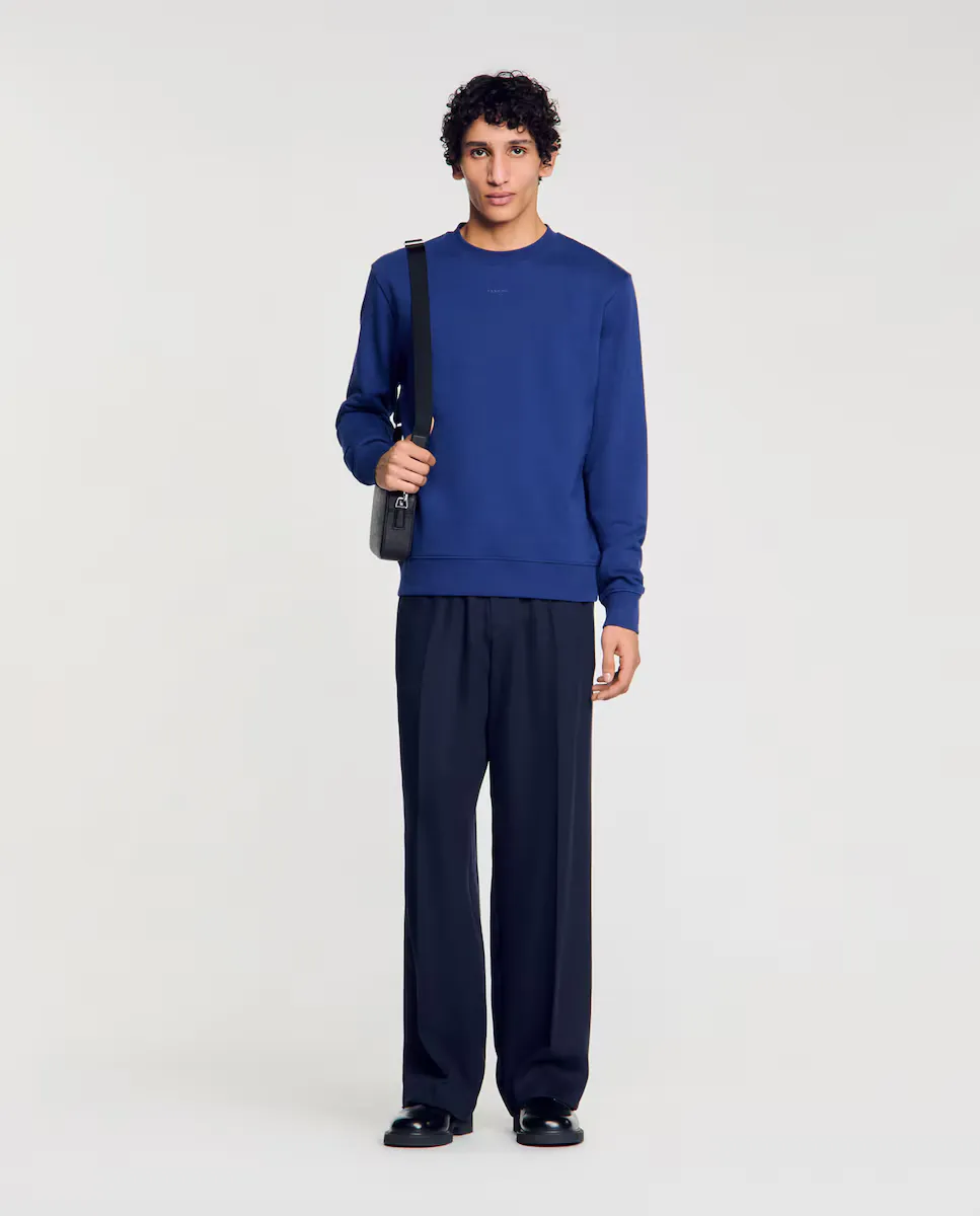 Флисовый свитшот без начесания с круглым вырезом и длинными рукавами, украшенный прорезиненным логотипом SANDRO спереди. Флисовый свитшот Sandro Homme. Шею. Длинный рукав. Прорезиненный логотип. Ребристая отделка.