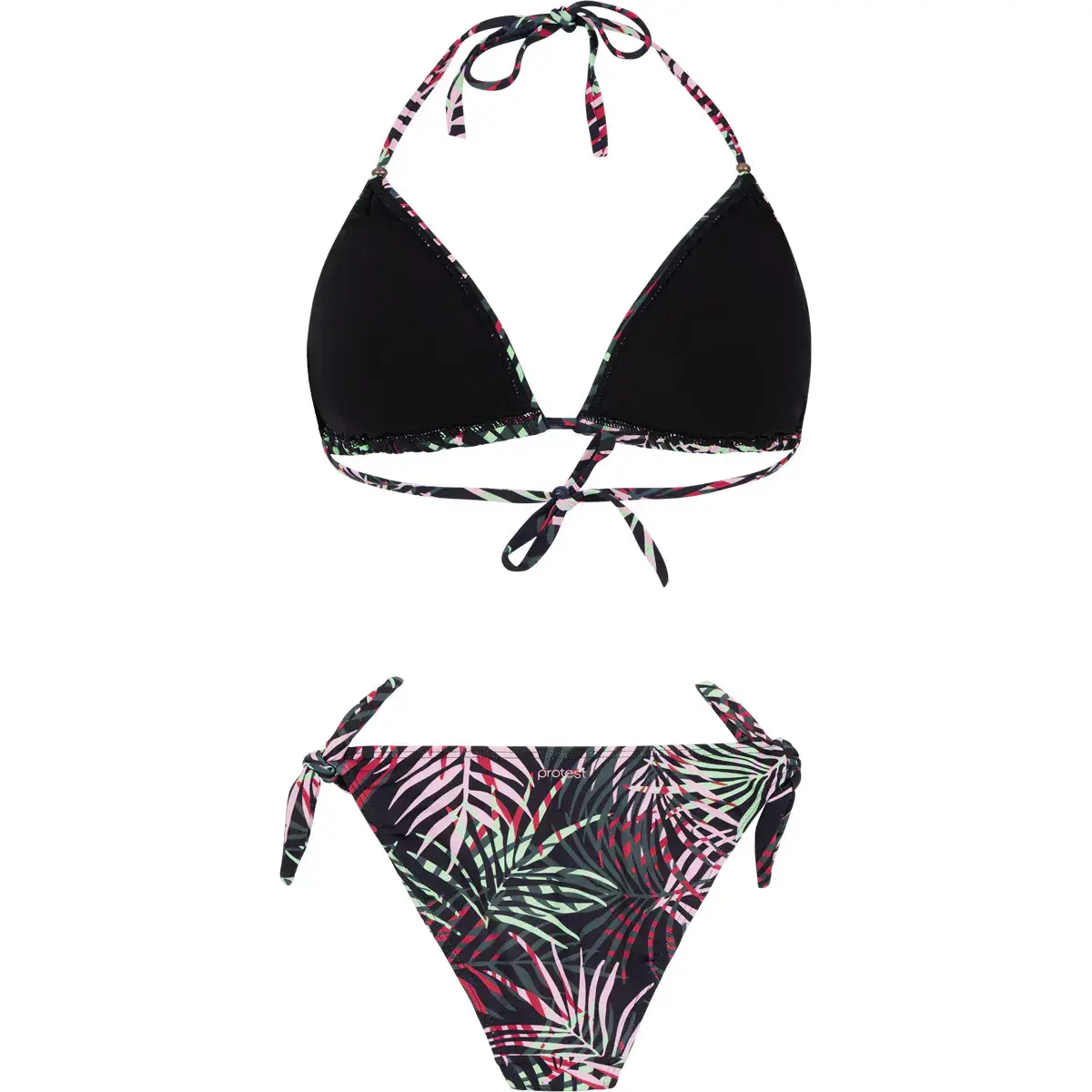 Произведите фурор этим летом с PRTISOLA от Protest. Этот великолепный комплект включает в себя великолепный треугольный топ бикини с индивидуальной поддерживающей посадкой благодаря застежке-бантику сзади и шее, а также съемным быстросохнущим чашкам. Подходящие обычные плавки бикини имеют красивые завязки по бокам из той же ткани. Цветочный принт удался. PRTISOLA также входит в нашу коллекцию PVRE Green; Наша инициатива по повышению экологичности наших коллекций. PRTISOLA изготовлен из переработанного материала, и в процессе производства не используются перфторуглероды.
