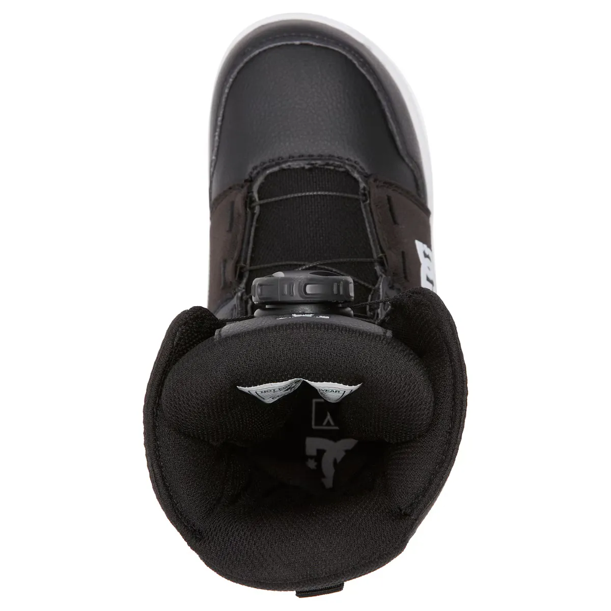 Ботинки для сноуборда BOA для детей. Особенности включают: систему регулировки BOA с диском M3, шнурки TX3, дизайн без внутренней ткани, стельку grom grow и уровень гибкости: 3/10.