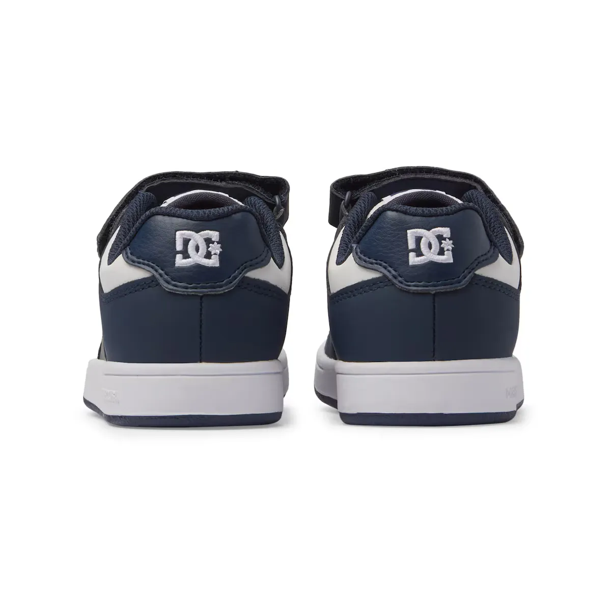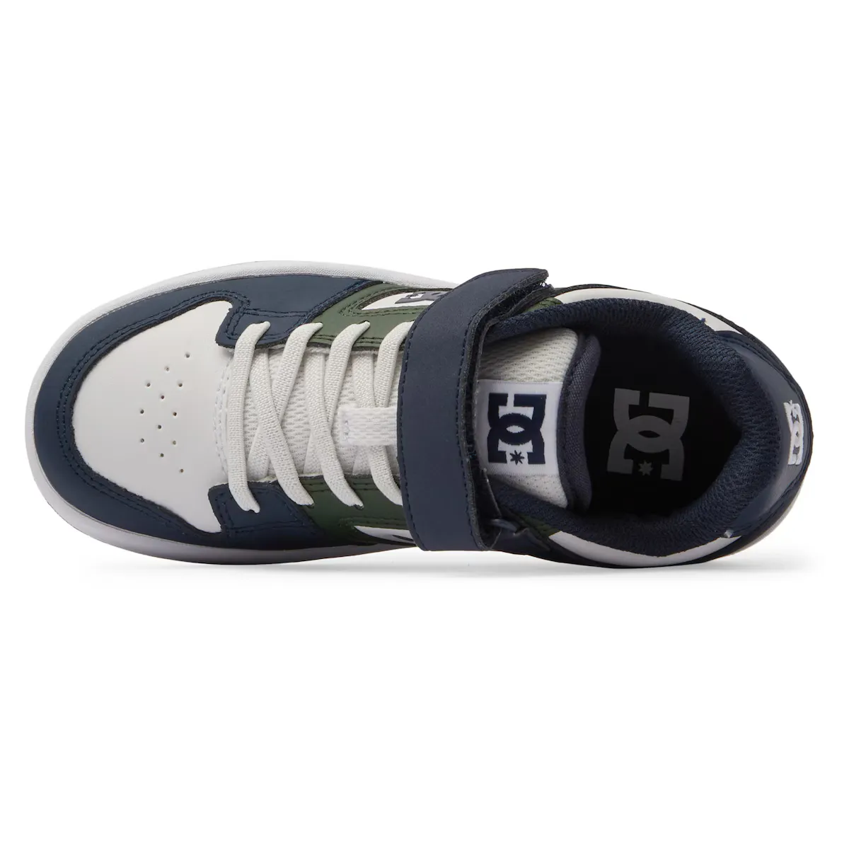 Кроссовки для детей. Особенности включают в себя: верх из кожи, нубука, замши или сетки, язычок и воротник с подкладкой из пеноматериала для комфорта и поддержки, клейкая застежка из ленты, эластичные шнурки, внутренняя сетчатая ткань, повышенный комфорт, обхватывающий интерьер из EVA, устойчивая к истиранию цепкая резиновая подошва и фирменный узор DC Pill Pattern.