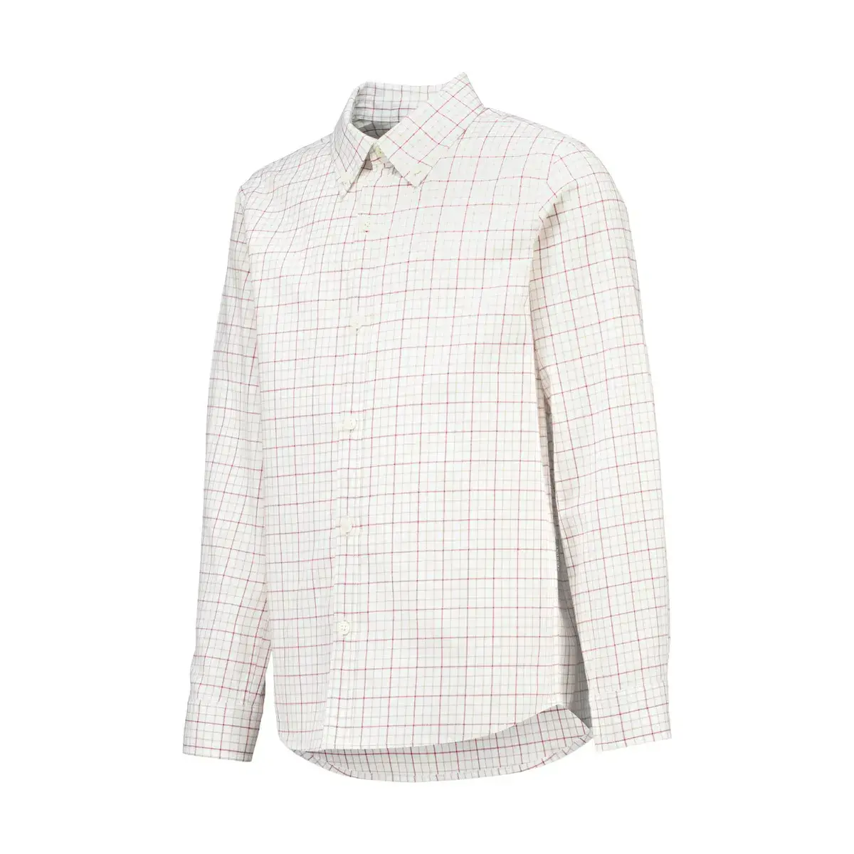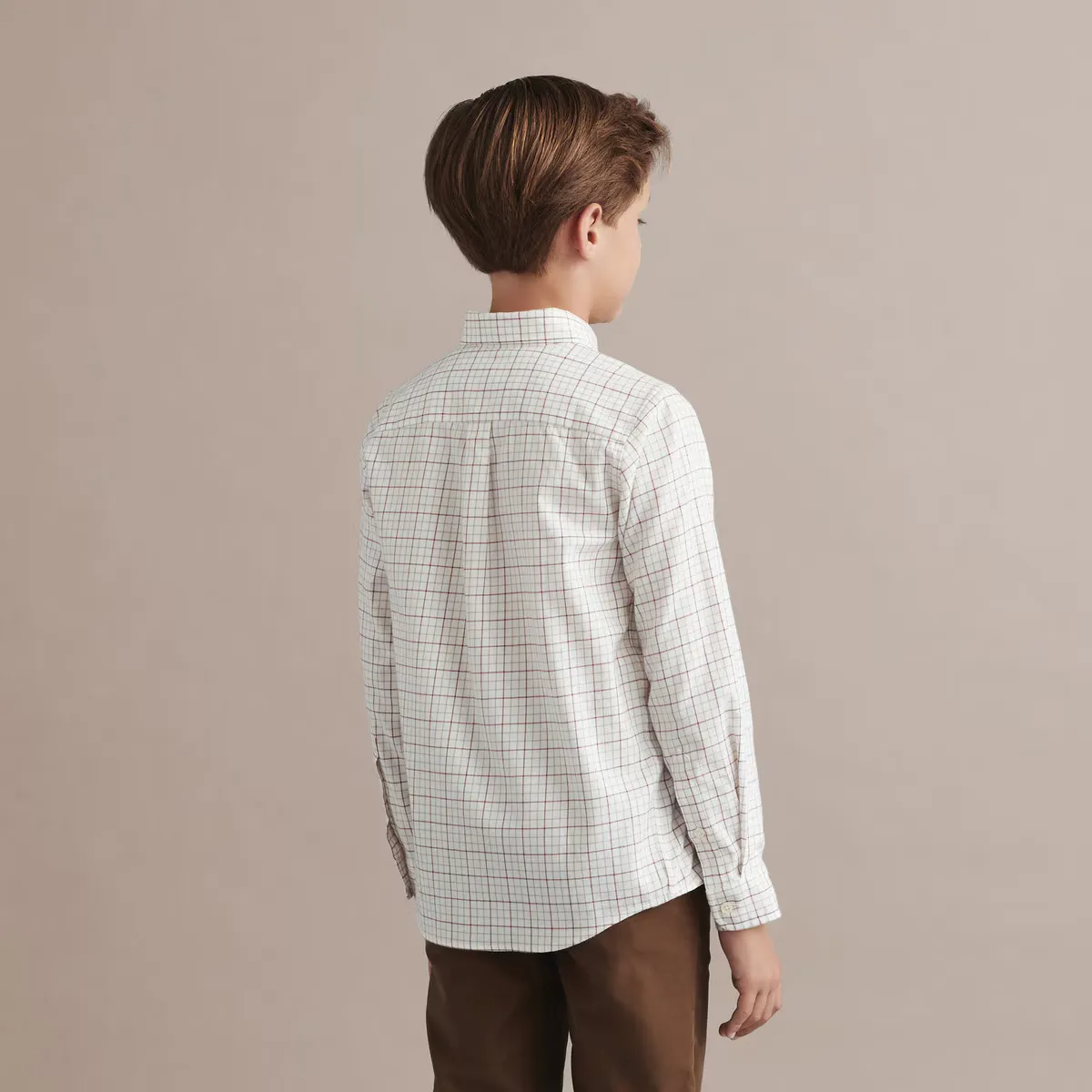 Детская рубашка в клетку из 100% хлопка. Длинные рукава и воротник на пуговицах.
