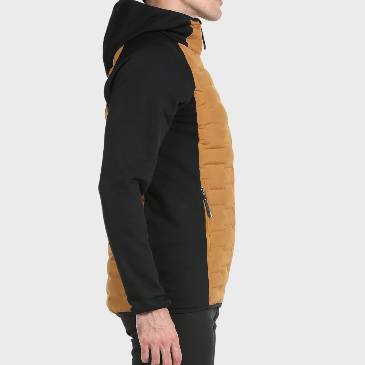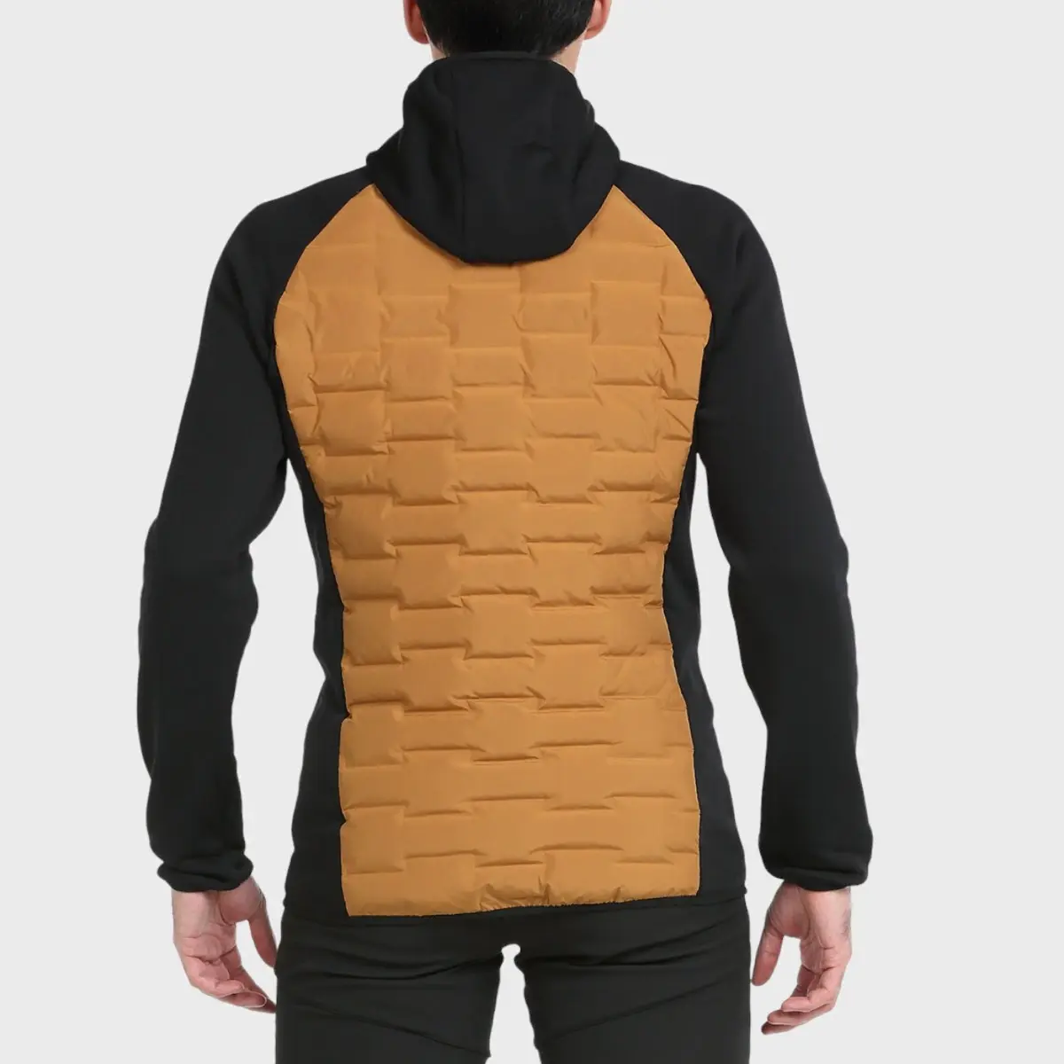 Гибридный анорак со спинкой и спереди из 3D ткани; Характерной особенностью данной ткани является конструкция камер, для размещения которых размещается наполнитель, без швов, что повышает устойчивость изделия к воде и ветру. Наружная отделка из полиэфирной тафты с отделкой DWR, наполнитель SORONA AURA от Dupont. Рукава и боковины изготовлены из полиэфирной ткани с 5% очень эластичным эластаном и с внутренней отделкой polar. Боковые карманы на молнии. Капюшон, манжеты и низ отделаны эластичной окантовкой