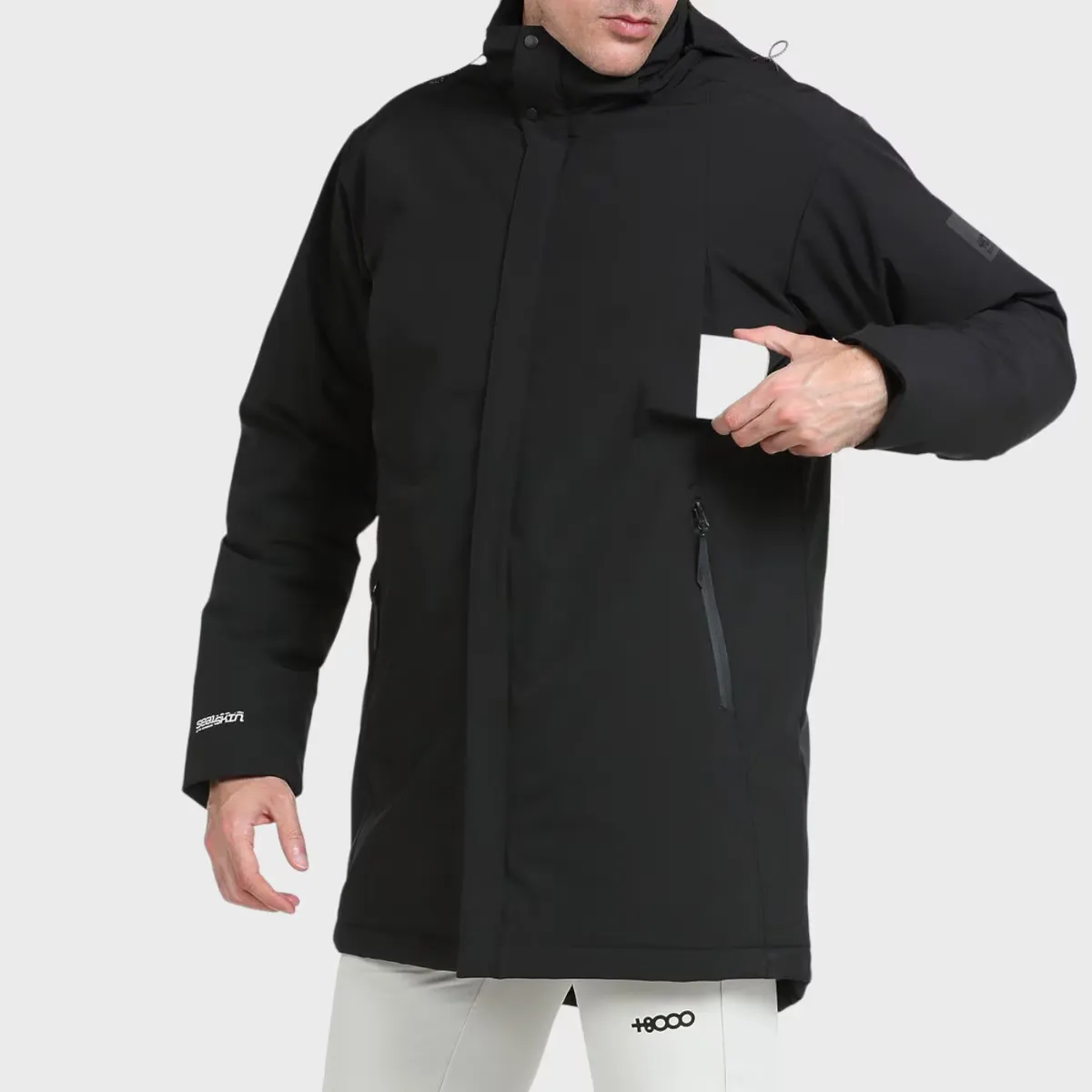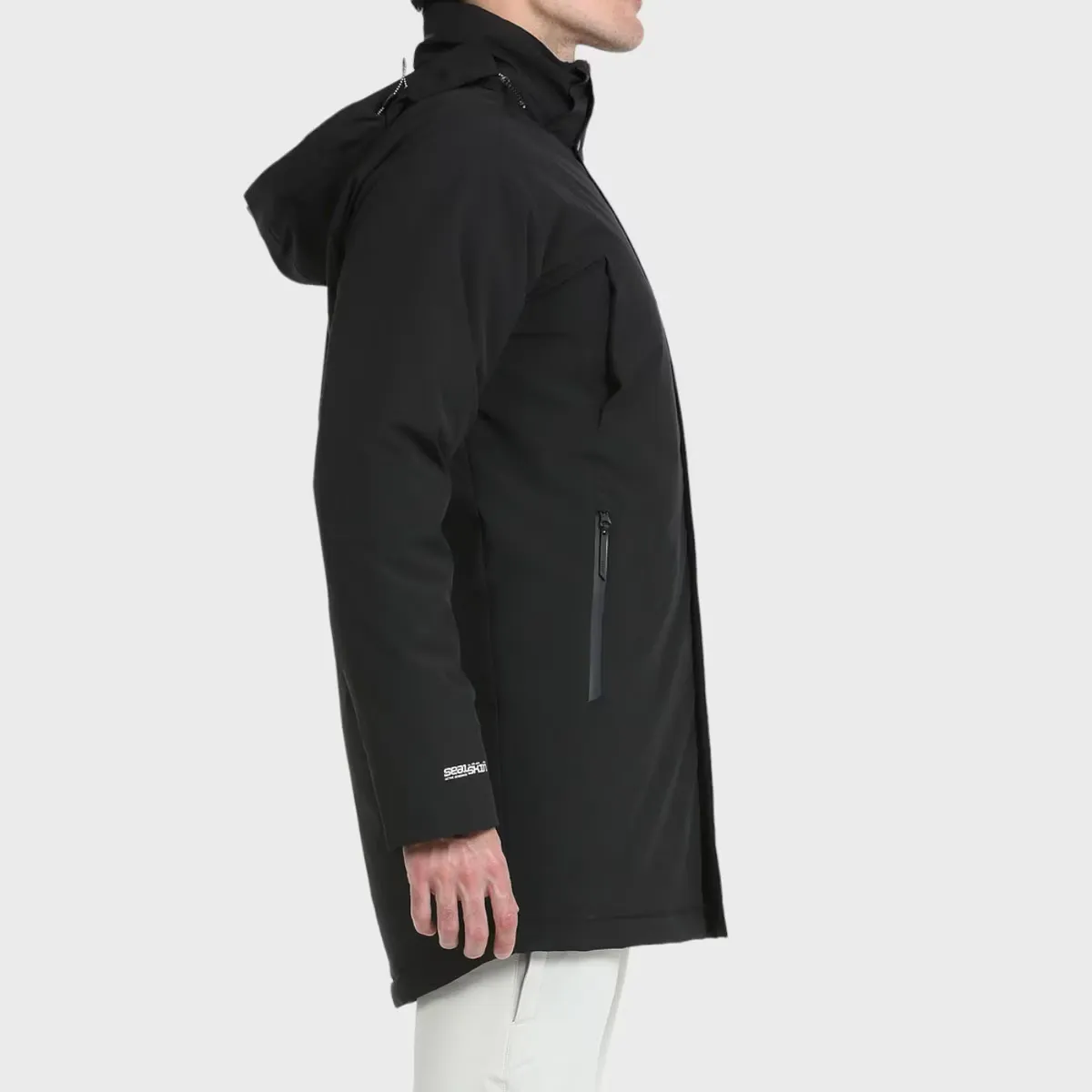 Пальто с минималистичным дизайном. Водонепроницаемая внешняя ткань с мембраной Sealskin (водонепроницаемая/дышащая 5000/5000). Легкий и мягкий качественный наполнитель Warmax. Капюшон спрятан в воротник, боковые карманы на водонепроницаемых молниях, центральная молния с двойным бегунком, двойные манжеты с регулируемой манжетой с внутренней стороны.
