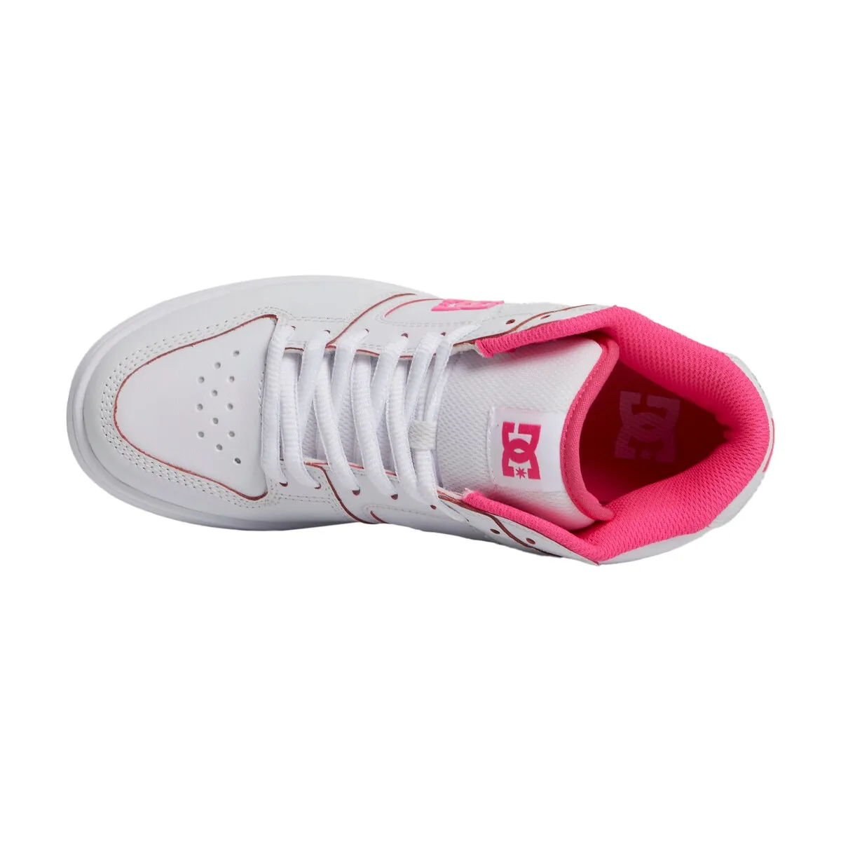 Женские кроссовки до середины икры. Особенности включают: Верх: кожаный верх [корова], высокий дизайн, язычок и воротник с мягкой подкладкой из пеноматериала для комфорта и поддержки, устойчивая к истиранию резиновая подошва и фирменный протектор DC на протекторе.