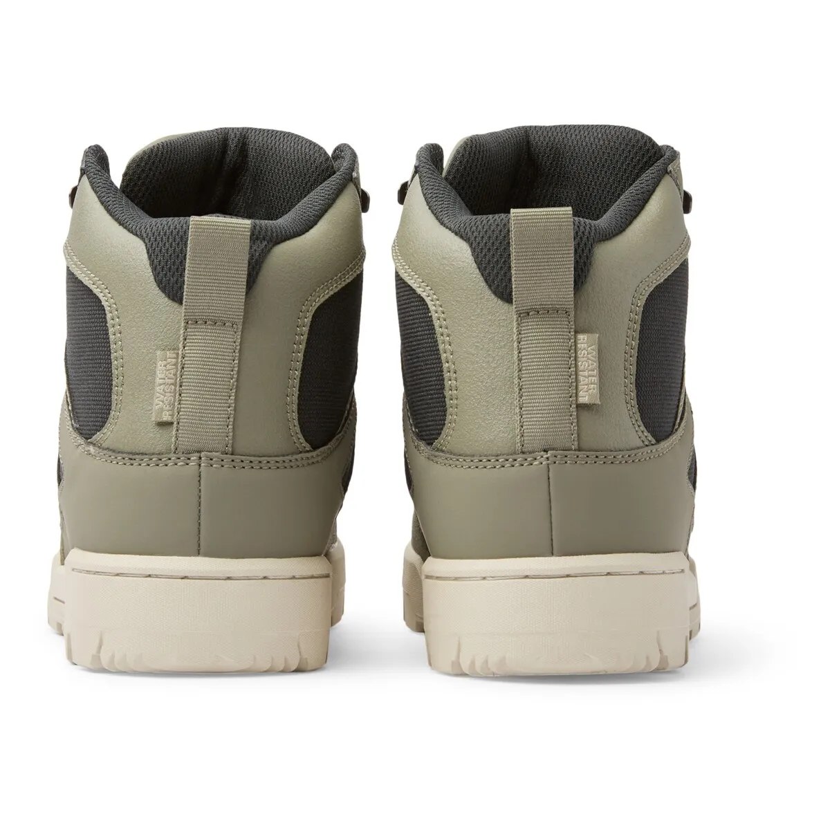 Высокие водонепроницаемые кожаные сапоги для мужчин. Особенности включают в себя: верх с конструкцией из кожи или нубука, утеплитель 3M Thinsulate, D-образный обруч и металлическую отделку быстрой шнуровки ботинок, усиленную конструкцию язычка для дополнительного тепла и устойчивости к атмосферным воздействиям, фольгированный Strobel для добавления тепла и прочную подошву с заметным следом.