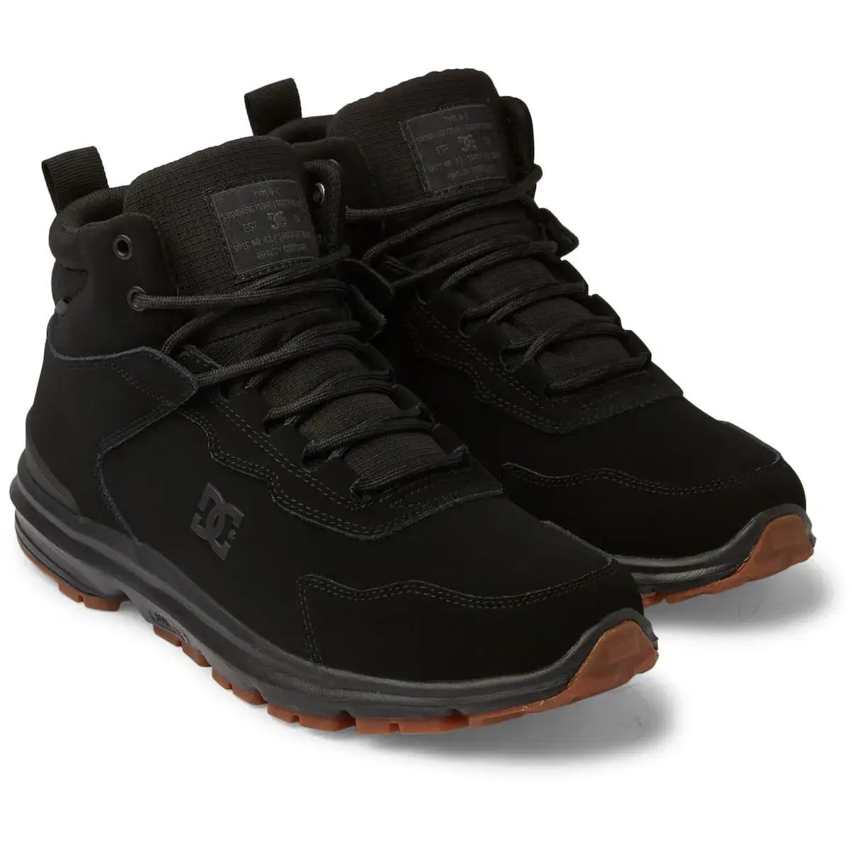 Мужские кожаные сапоги. Особенности включают: верх из водостойкой кожи, спортивную подошву Unilite для комфорта с резиновым следом для улучшения сцепления, застежку: застежку на шнуровке, бренд: формованный бренд DC и другие особенности: фольгу Strobel для добавления тепла.