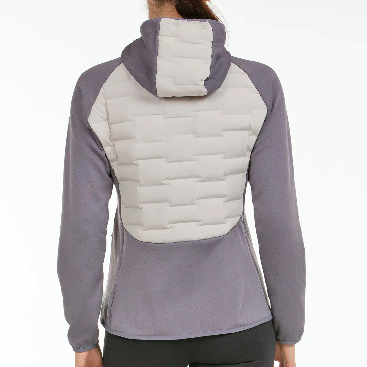 Гибридный анорак со спинкой и спереди из 3D ткани; Характерной особенностью данной ткани является конструкция камер, для размещения которых размещается наполнитель, без швов, что повышает устойчивость изделия к воде и ветру. Внешняя ткань из полиэфирной тафты с отделкой DWR и наполнителем SORONA AURA от Dupont. Рукава и бока изготовлены из полиэфирной ткани с 5% эластана, очень эластичной и с полярной отделкой внутри. Боковые карманы на молнии, капюшон, манжеты и низ собраны эластичной окантовкой