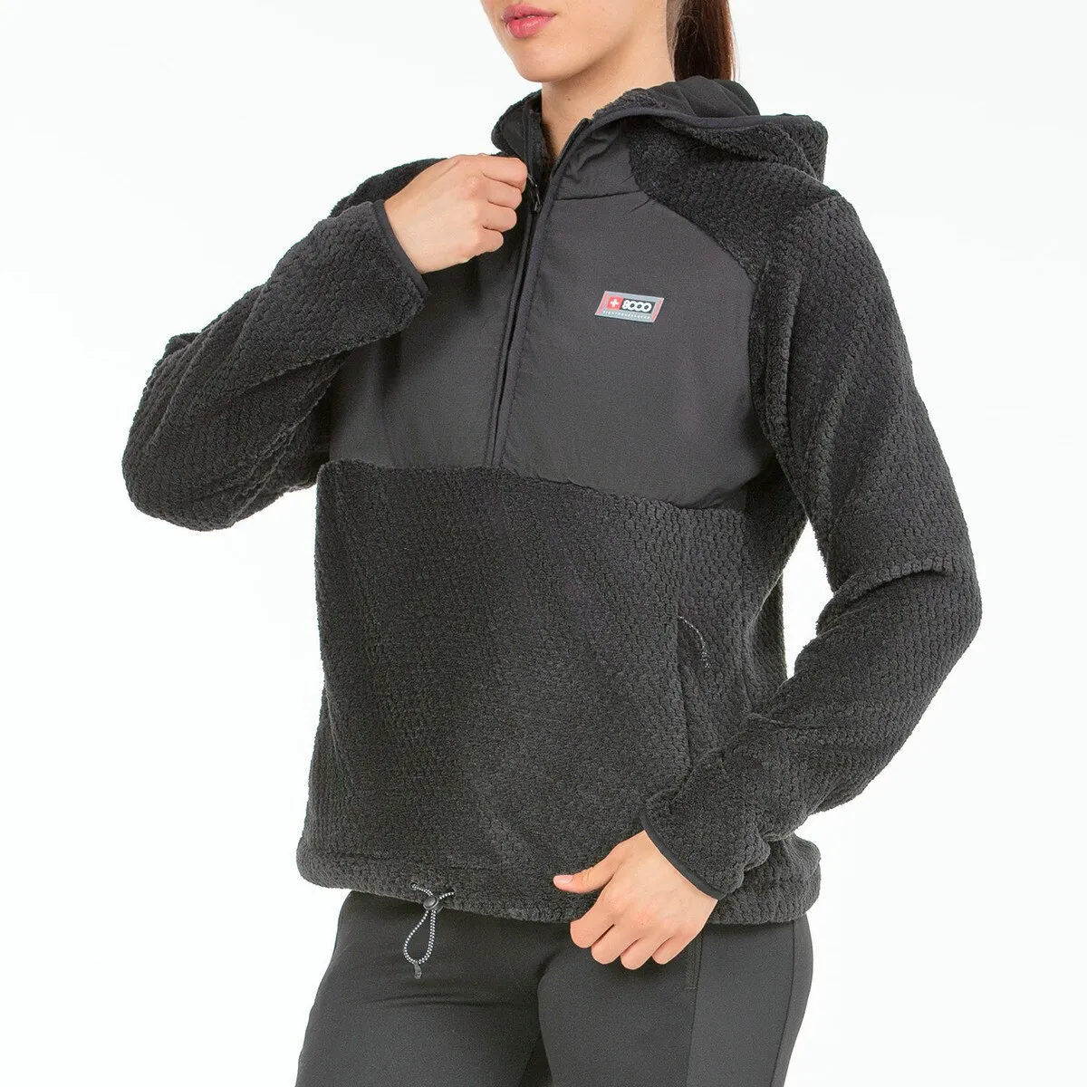 Женская толстовка на молнии из флисовой ткани с бриллиантовым флисом и фирменной резиновой этикеткой. Передняя панель с тканью рип-стоп и боковыми карманами на молнии. Регулируемый низ на резинке и танках и манжеты с эластичной оклеткой. Воротник и капюшон отделаны окантовкой. Вышита эмблемой в виде линии под грудью.