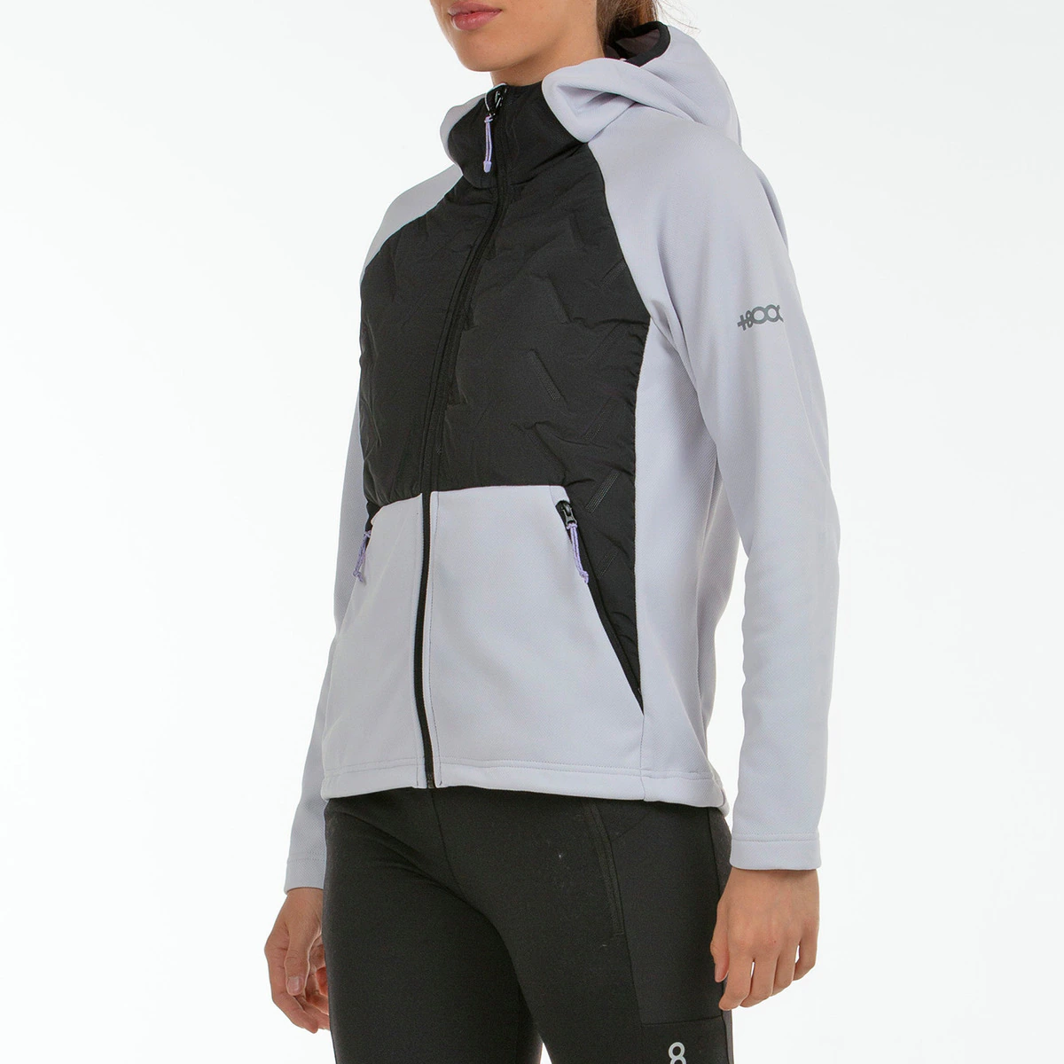 Женская куртка гибридной конструкции. Спереди с синтетической подкладкой и внешней тканью Nylon Ripstop, остальная часть одежды изготовлена из 100% полиэстера двустороннего трикотажа с внутренней отделкой polar. Прямой подол регулируемый с помощью танк, боковые карманы на молниях