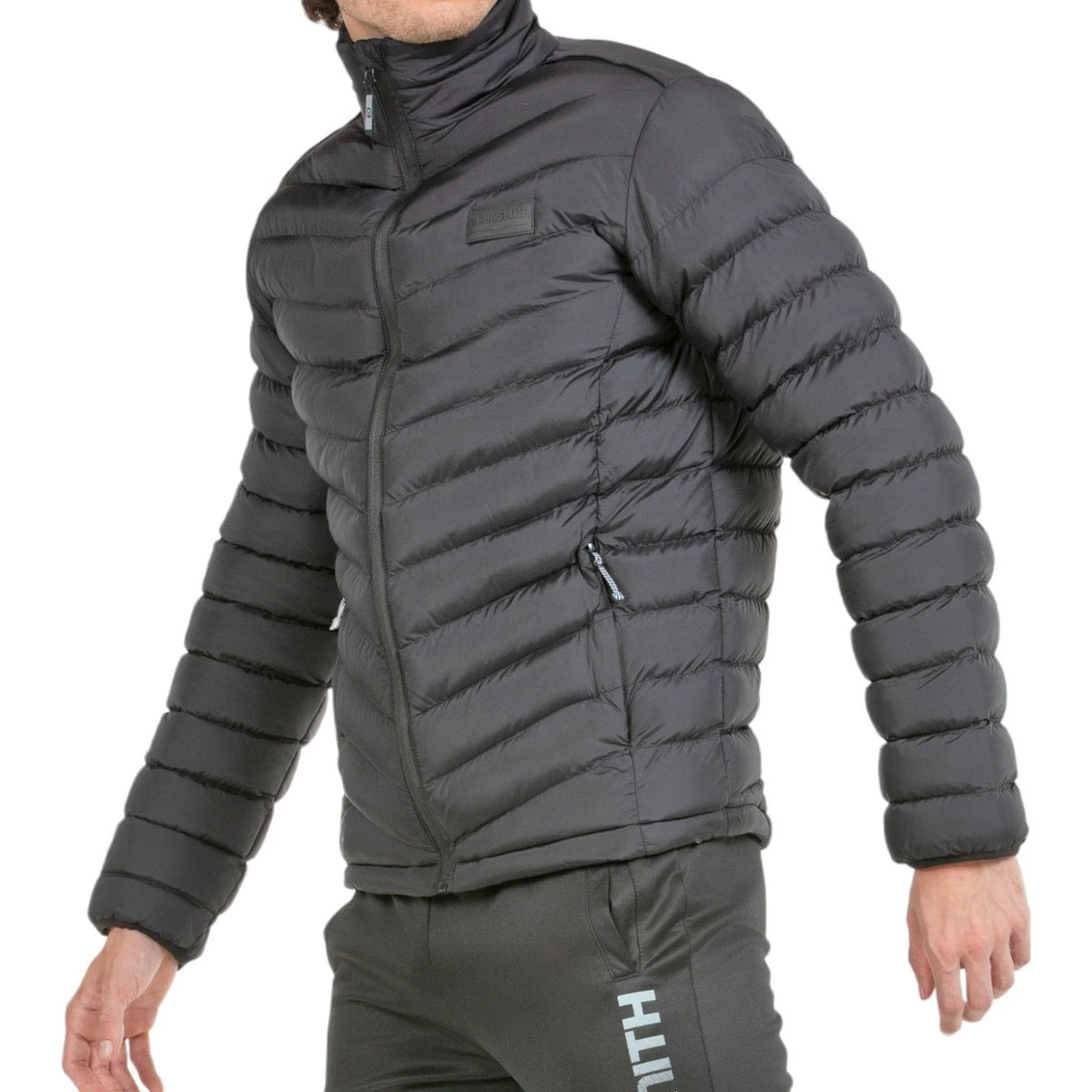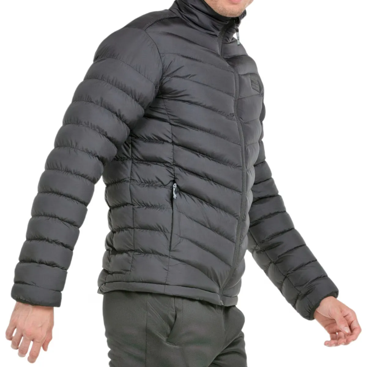 Мужская куртка с синтетическим наполнителем. Внешняя ткань из нейлона тафты, наполнитель из полиэстера распределен по камерам на передней панели. Боковые карманы на молнии. Манжеты с эластичной окантовкой и танками внизу для регулировки
