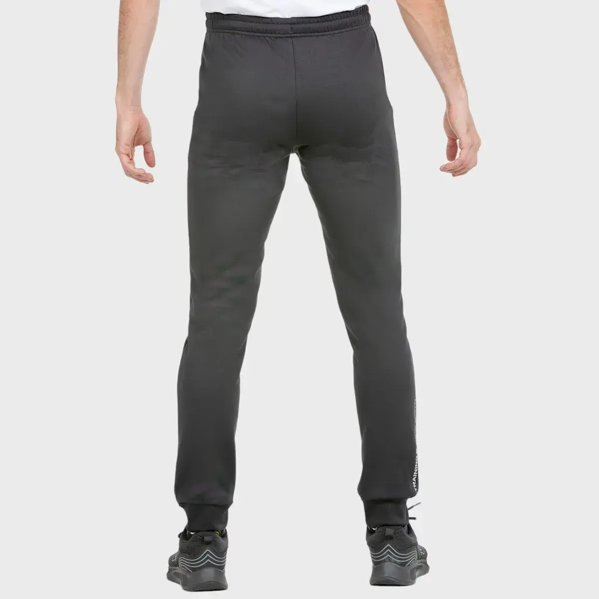 Длинные брюки с манжетами внизу нашей тренировочной линии. Выполненный из матовой ткани из полиэстера, теплый и очень удобный, он имеет регулируемый пояс со шнурком, боковыми карманами и ребристыми манжетами. Украшен графическим изображением линии.