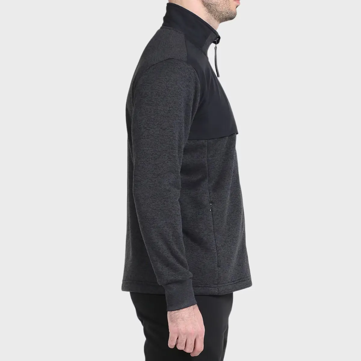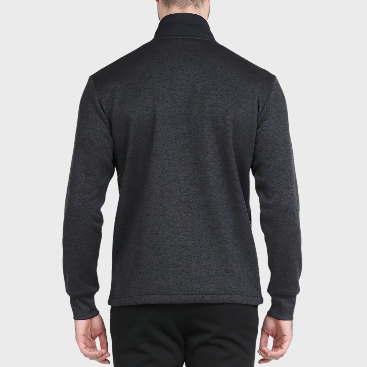 Свитшот из нашей тренировочной линейки, выполненный в начесанной полиэстеровой ткани, теплый и очень удобный и со вставками на груди из плоской ткани двустороннего стрейч-полиэстера. Имеет центральную молнию, прямой воротник также с биэластичными тканевыми вставками, ребристые манжеты и карманы на невидимой молнии. Украшен графическим изображением линии.