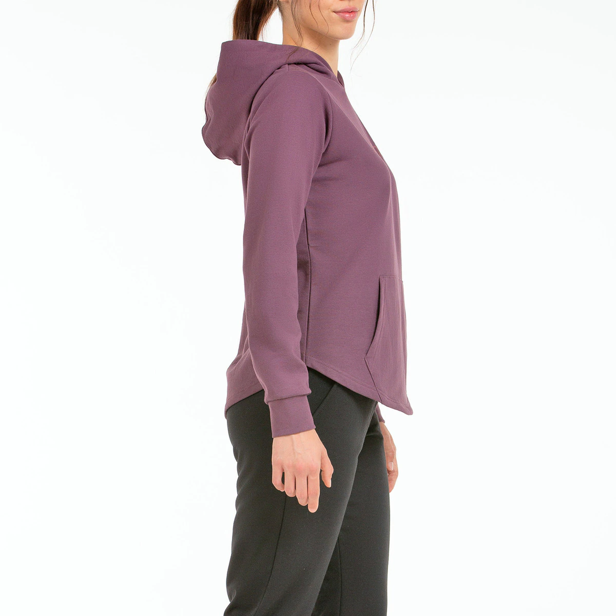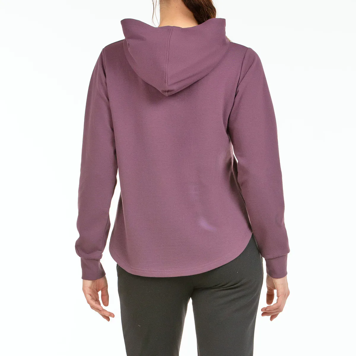 Толстовка из стрейчевого флиса, с капюшоном, закругленным подолом и манжетами в рубчик. Графика с бархатистой текстурой спереди.