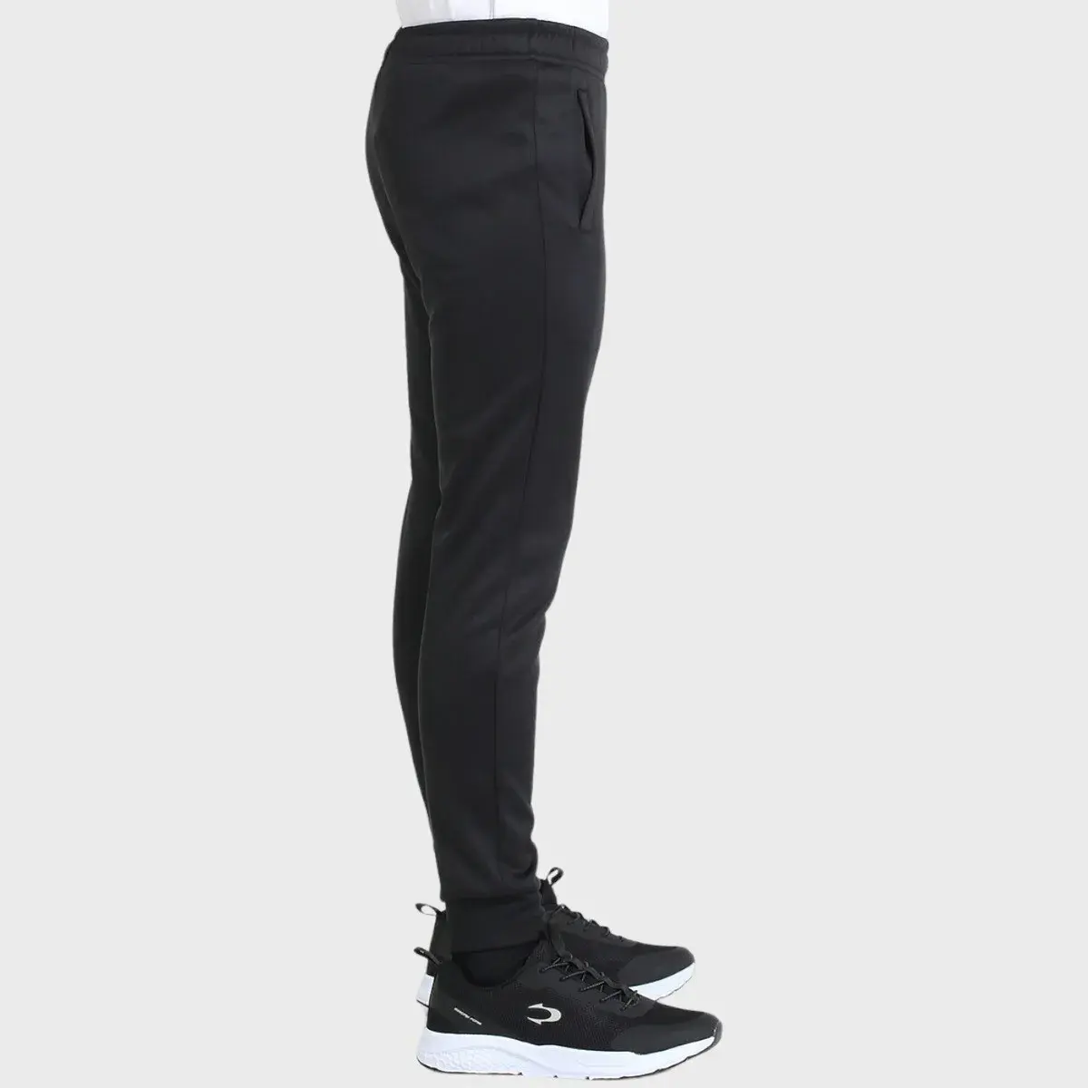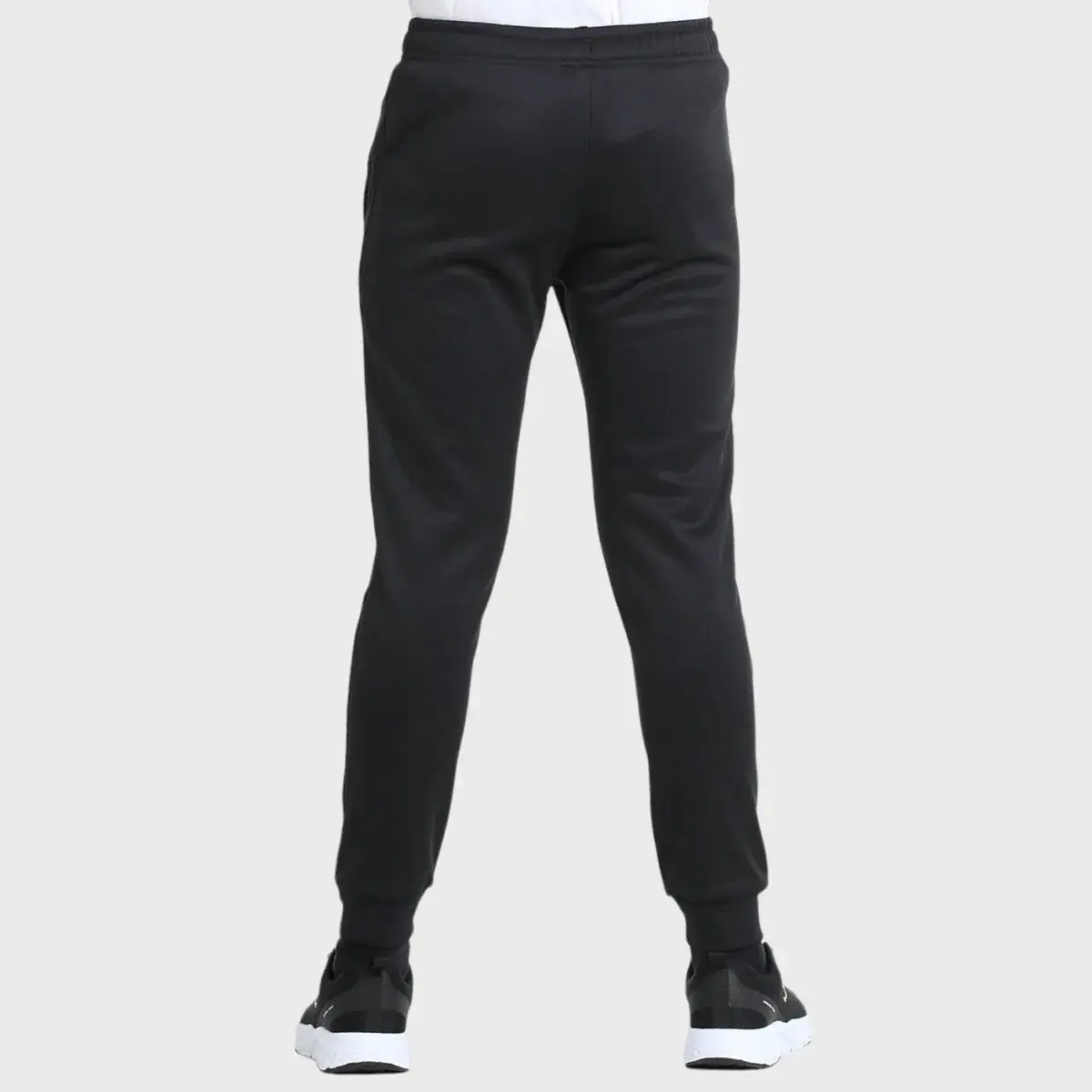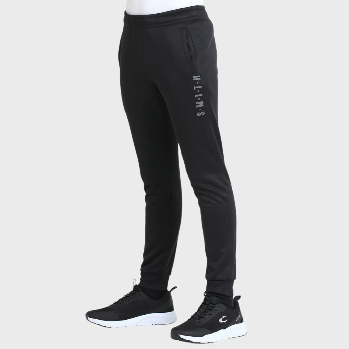 Длинные брюки из матовой интерлокальной ткани, регулируемый пояс со шнурком, манжета в рубчик, боковые карманы и боковая графика.