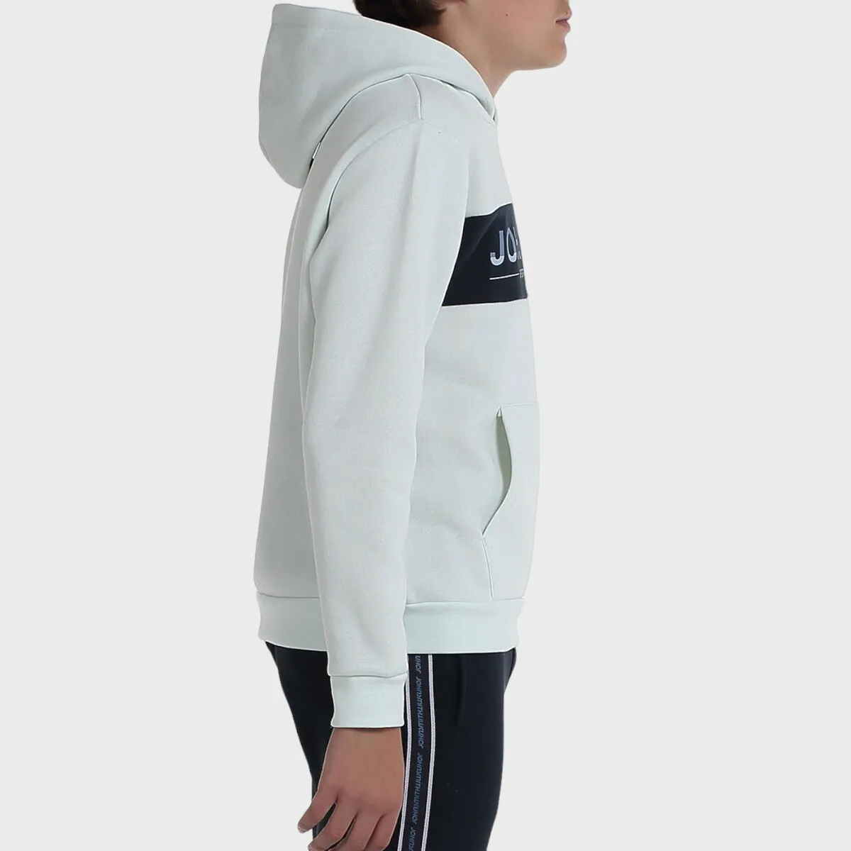 Флисовый свитшот с капюшоном и карманом в виде кенгуру. Имеет вырез на груди с напечатанным фирменным рисунком. Манжеты в рубчик и низ.