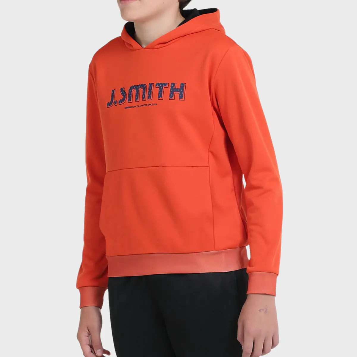 Закрытый свитшот с капюшоном из ткани интерлок, начесанный изнутри карманом кенгуру. Декоративная лента на капоте. Графика на груди.