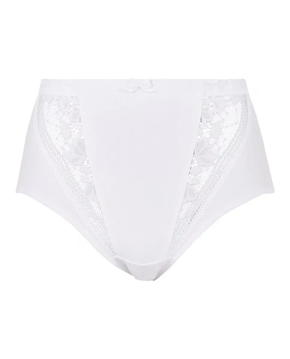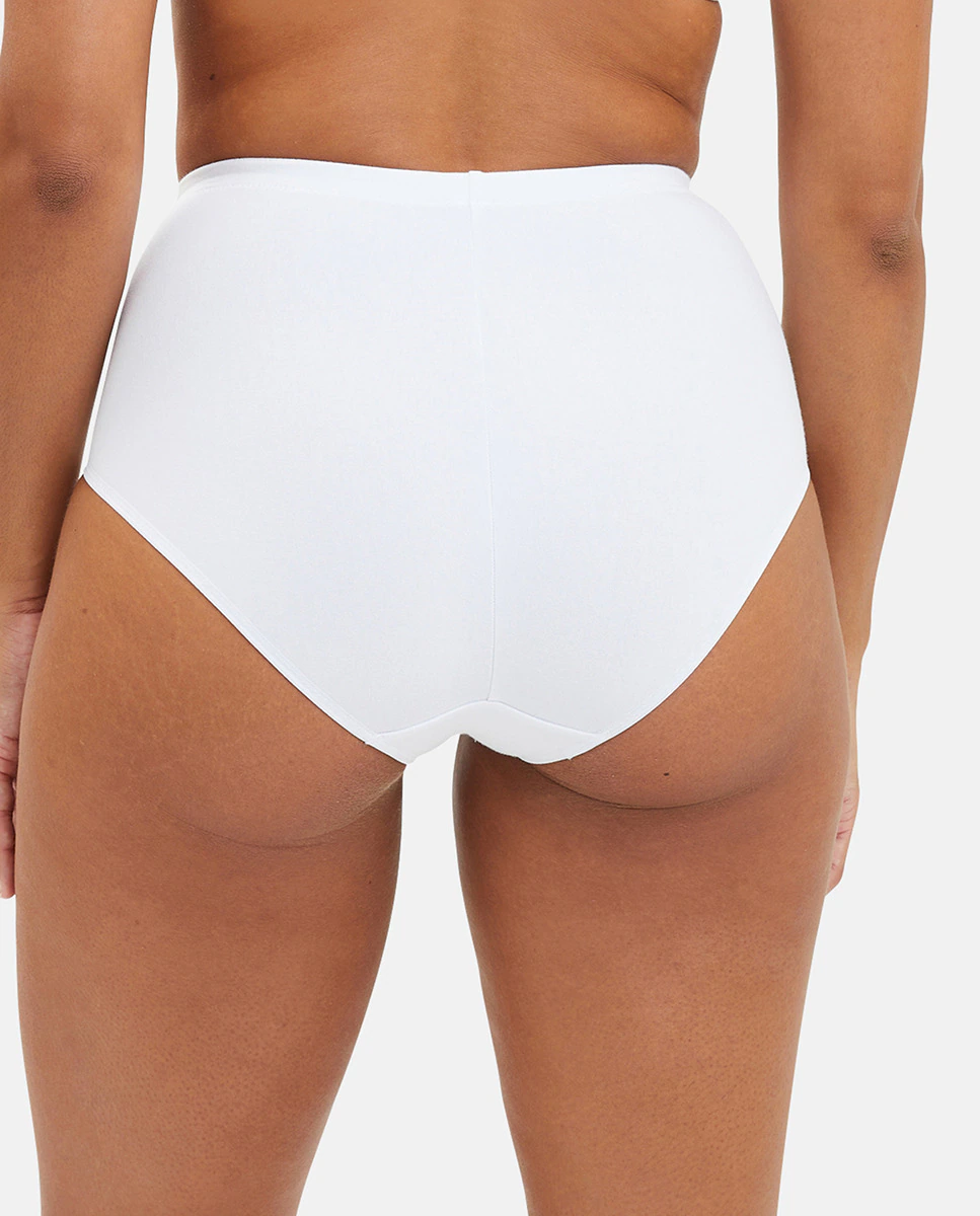 Высокие трусы, выполненные из сверхмягкого хлопка, органического происхождения, и кружева из переработанных материалов. Центральная часть с подкладкой для лучшего контроля, небольшого эффекта уменьшения формы