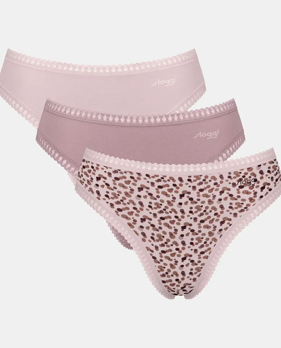 Упаковка из 3 трусиков с высокими штанинами на каждый день. Мягкий органический хлопок с сертификацией GOTS. Эффектная графичная кружевная отделка на талии для женственного стиля. Уникальные принты Sloggi смешиваются с тональными цветовыми сочетаниями в мультиупаковках, чтобы предоставить вам все варианты