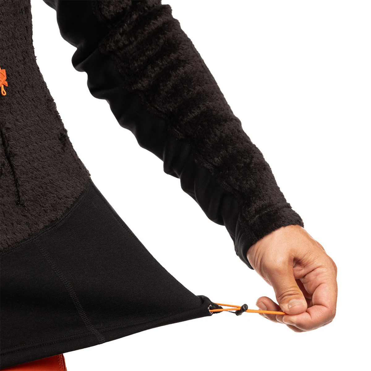 Куртка из Polartec High Loft и Polartec Power Stretch Pro с фиксированным капюшоном, плоскими швами, эластичной застежкой внизу, нагрудными и брюшными карманами на молнии. Тепловый, легкий, дышащий и эластичный для комфорта.