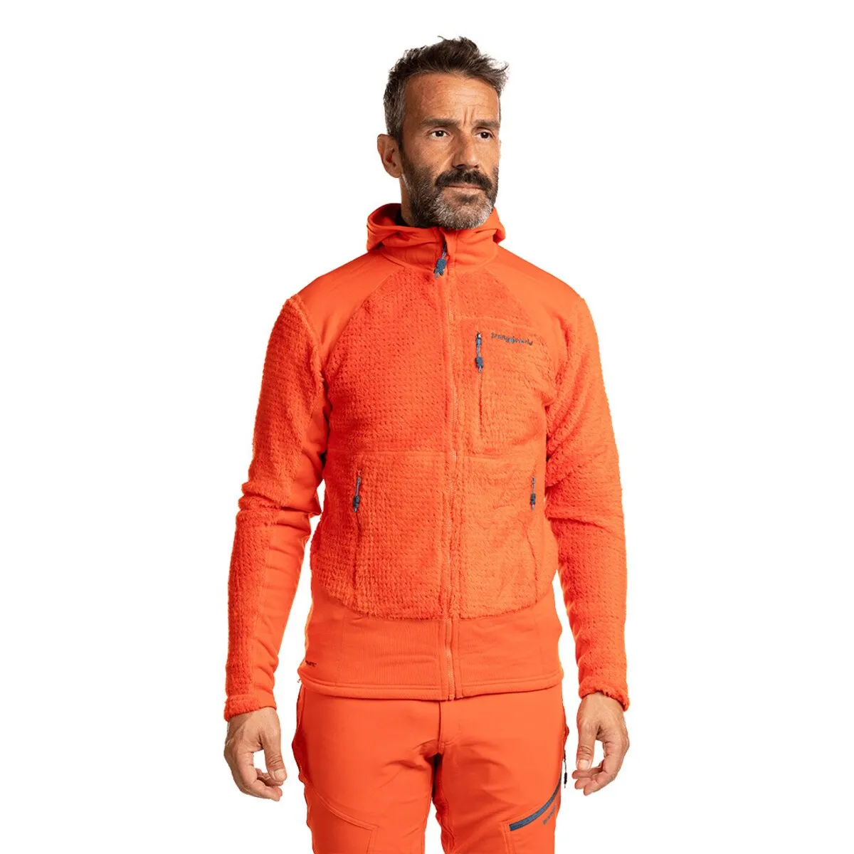 Куртка из Polartec High Loft и Polartec Power Stretch Pro с фиксированным капюшоном, плоскими швами, эластичной застежкой внизу, нагрудными и брюшными карманами на молнии. Тепловый, легкий, дышащий и эластичный для комфорта.
