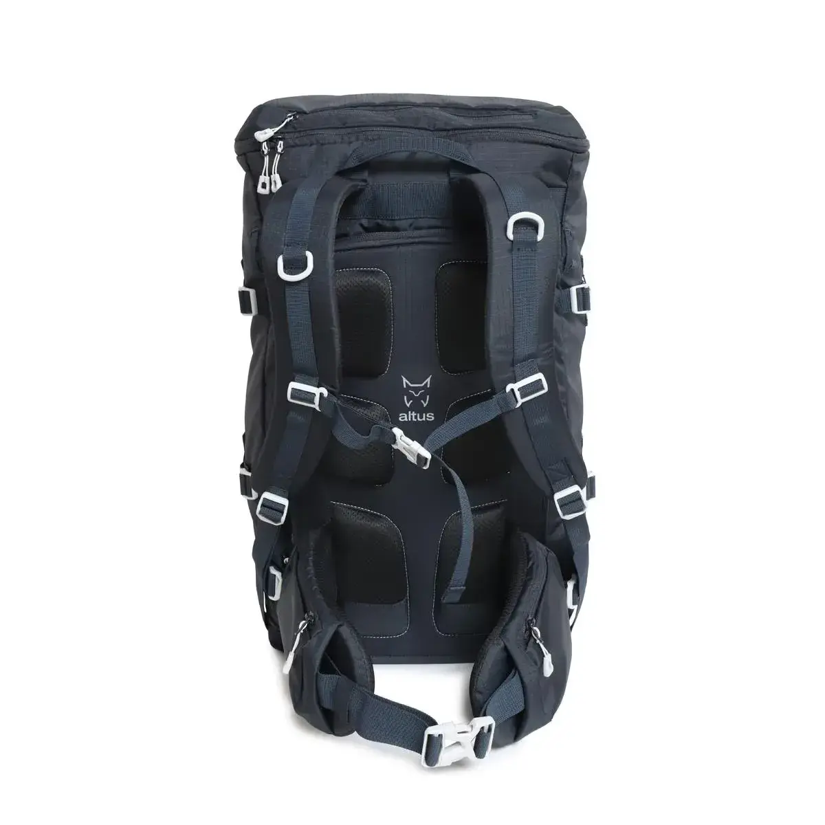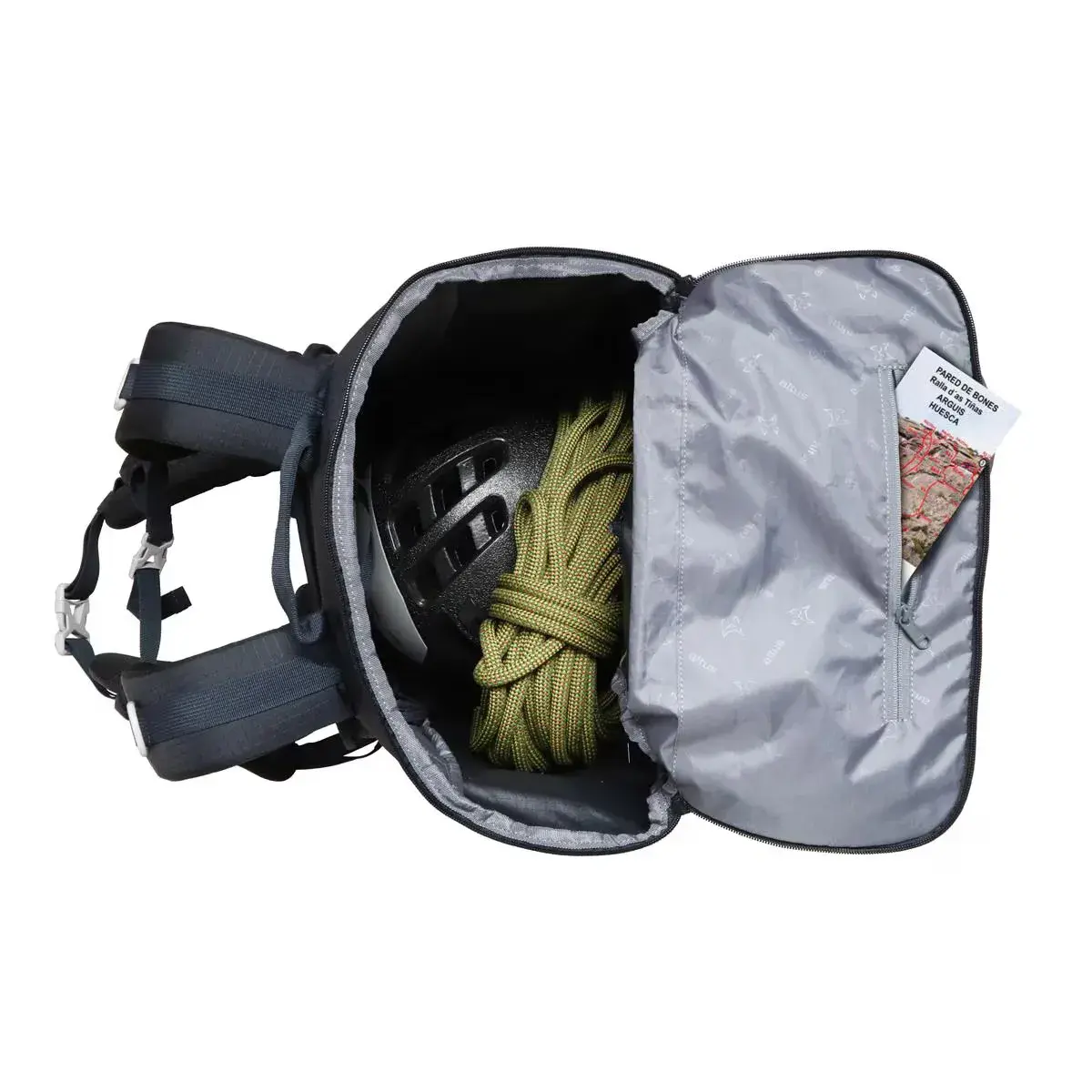 Рюкзак предназначен для удобной и организованной переноски всего спортивного альпинистского снаряжения вплоть до подножия маршрута. Он имеет систему верхнего открывания и четыре боковых компрессионных ремня.
