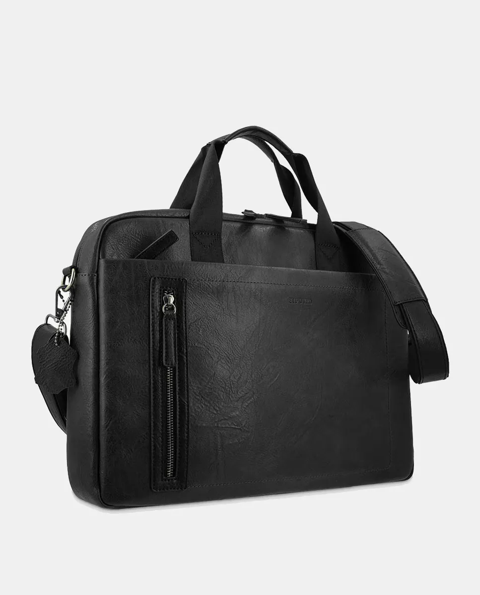 Портфель, папка для документов и компьютера из холста. Имеет несколько отделений, закрывающихся на молнию, с передним карманом на молнии. Он имеет ручку и выдвижную ручку для подвешивания. В салоне есть карман на молнии и отделения для ноутбука, документов и рабочих предметов.
