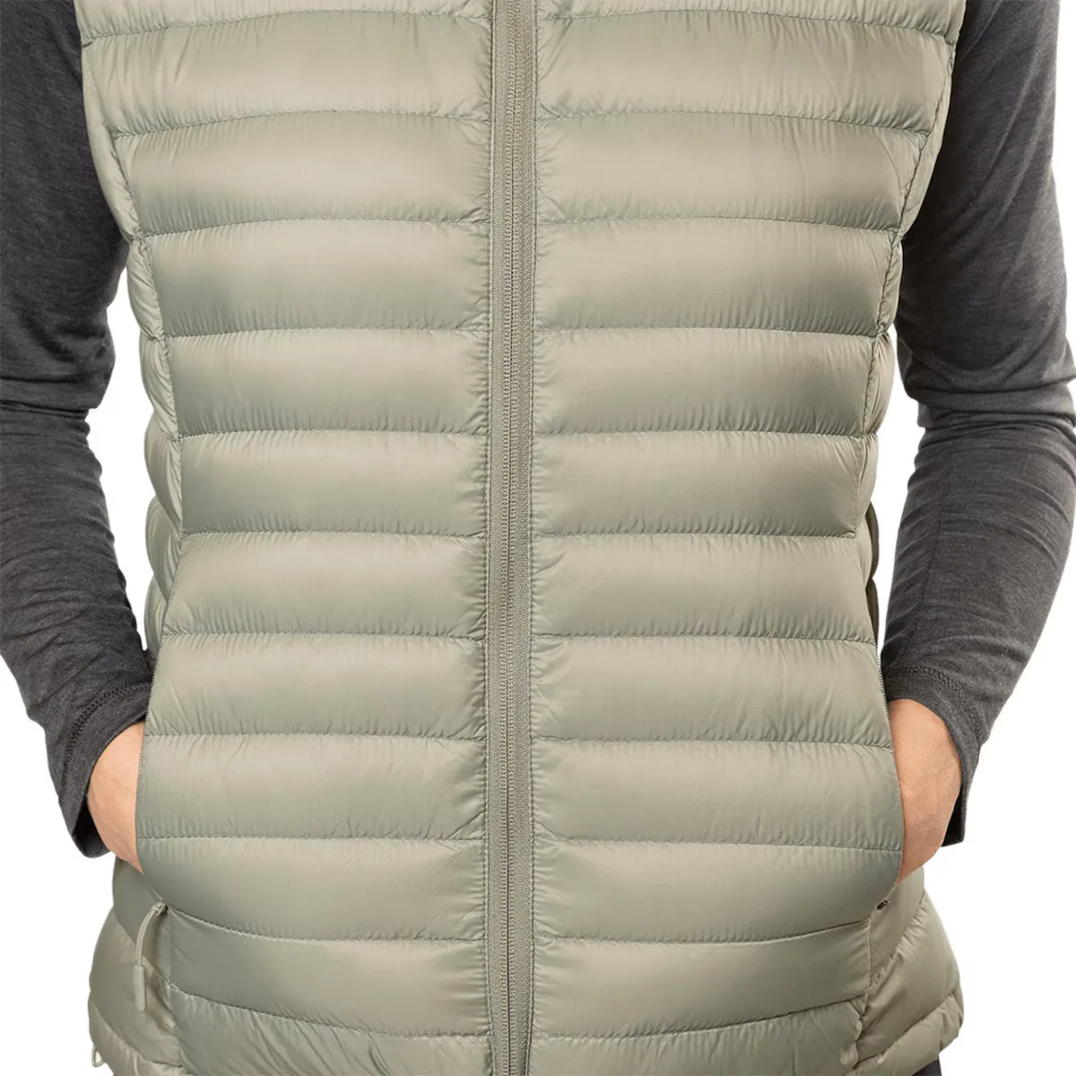 Полиамидный жилет WR с защитой от пуха и утиным пухом RDS (90 г). Эластичная застежка внизу с застежкой tanca. Продольная молния. Приталенный дизайн. Брюшные карманы на молнии. Легкий, удобный, тепло- и водоотталкивающий.