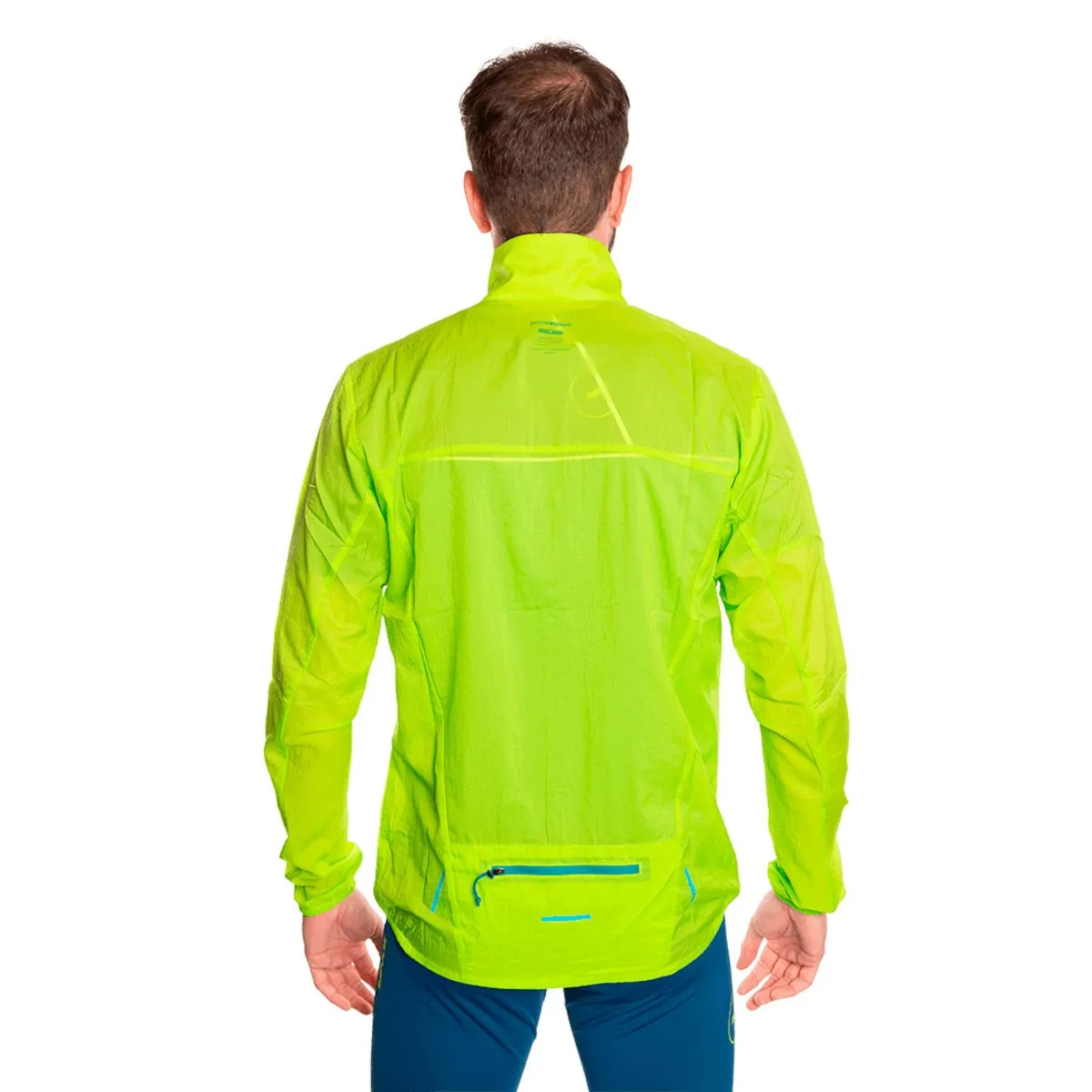Сверхлегкая куртка-ветровка из переработанной ткани. Водоотталкивающая обработка без ПФУ. Сзади есть карман, который позволяет сжимать одежду. Светоотражающие мотивы в области поясницы для лучшей видимости.