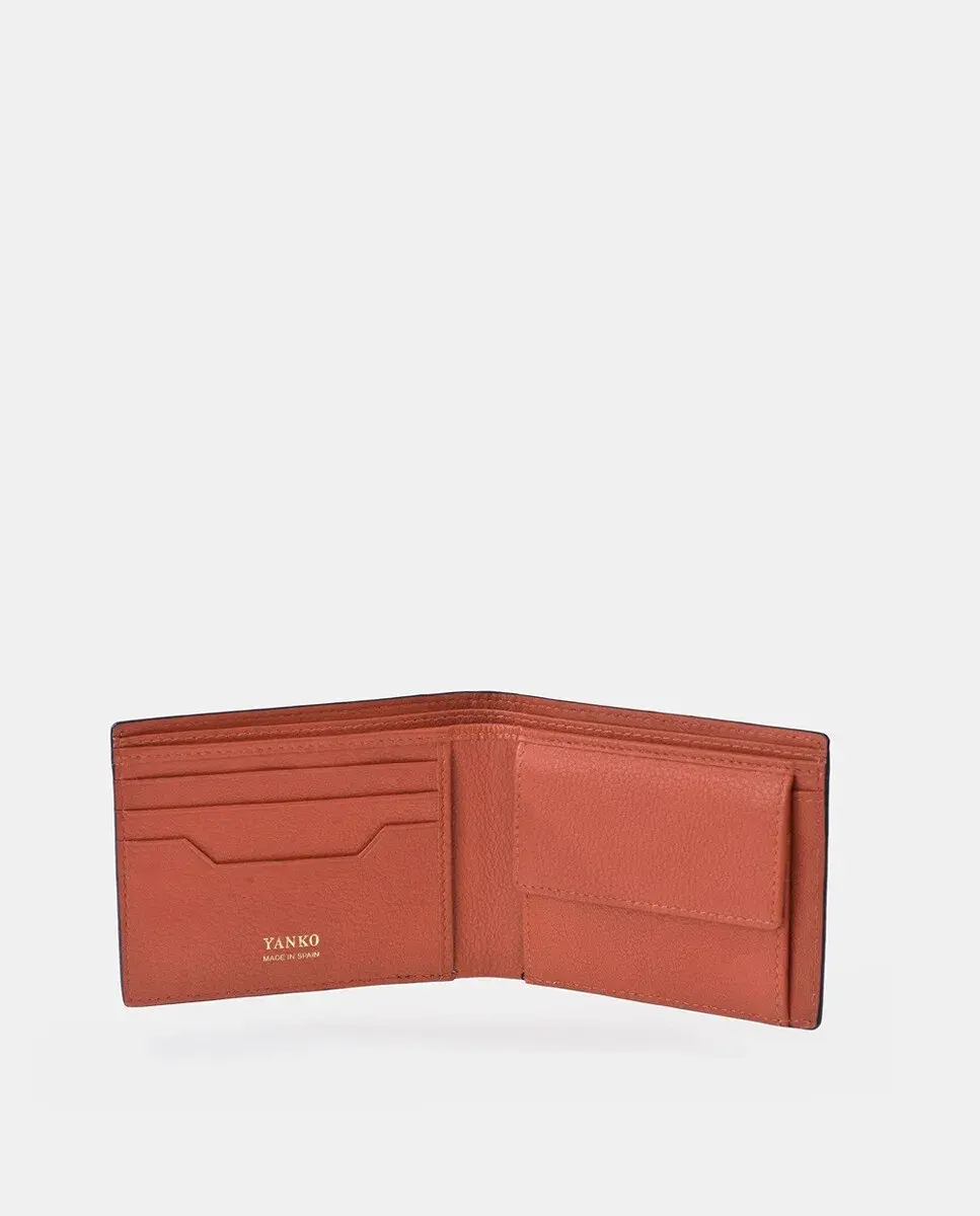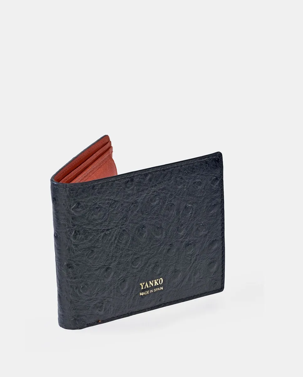Мужской кошелек в американском стиле пафра от YANKO выполнен из кожи страуса с гравировкой. Дизайн с двойным отделением для купюр, 3 прорезями для ножек карт, 2 карманами и внутренним кошельком для монет.