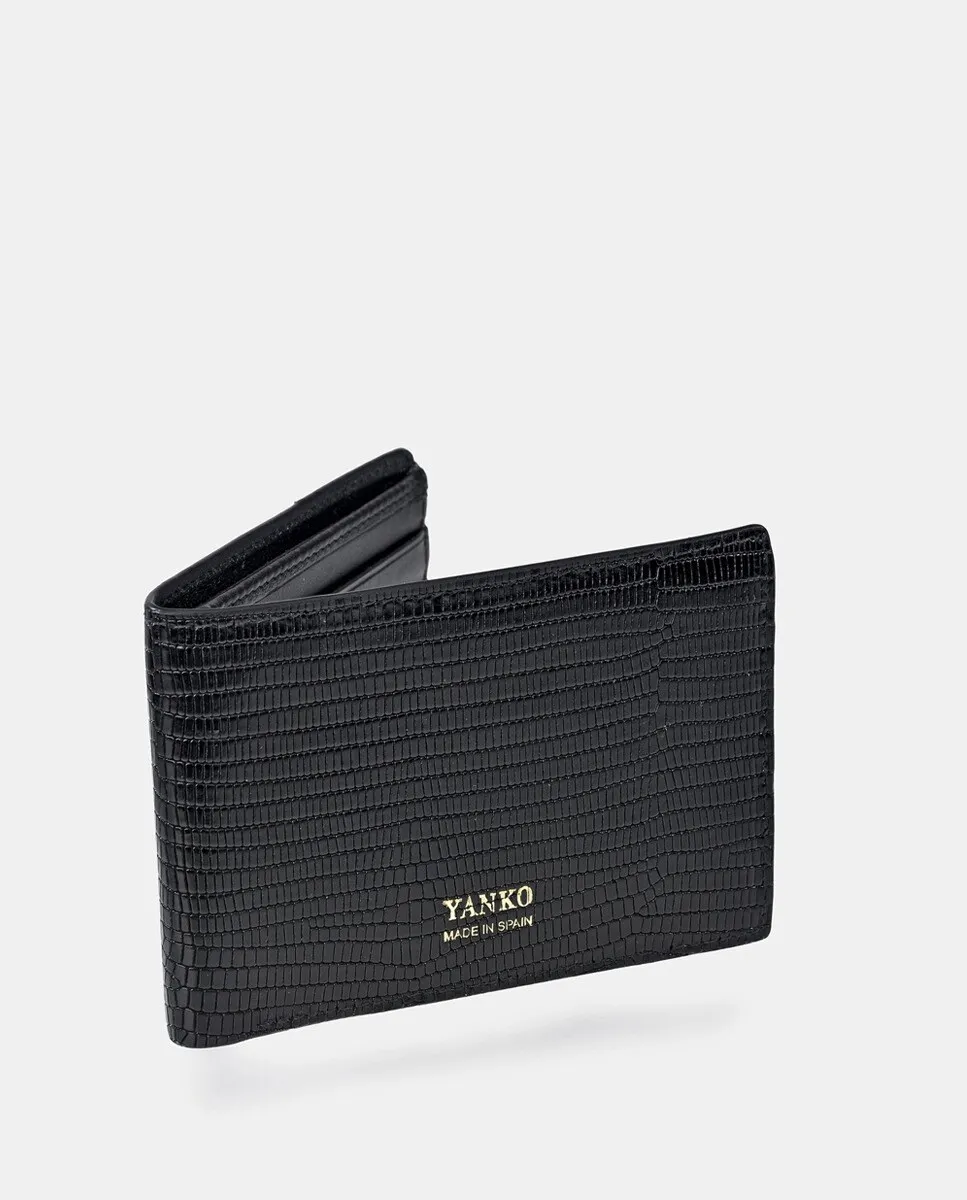 Американский мужской кошелек от YANKO из кожи с тиснением. Дизайн салона с двойным отделением для купюр, 4 слотами для карт и 2 карманами.