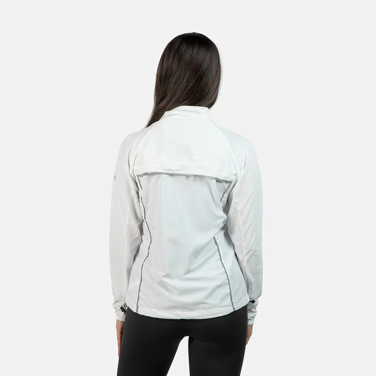 Легкая и функциональная женская куртка для бега или треккинга. Ткань AWPS, DRY и Coolspeed: легкий материал, водоотталкивающий, дышащий, быстросохнущий и ветрозащитный. Облегающий крой для адаптации к любым движениям. Рукава анатомической формы с эластичным отверстием для большого пальца. Вентиляция подмышек сетчатой тканью. Внутренняя резинка внизу с танкасом. Боковые и нагрудные карманы на молнии. Светоотражающие детали на задней панели.