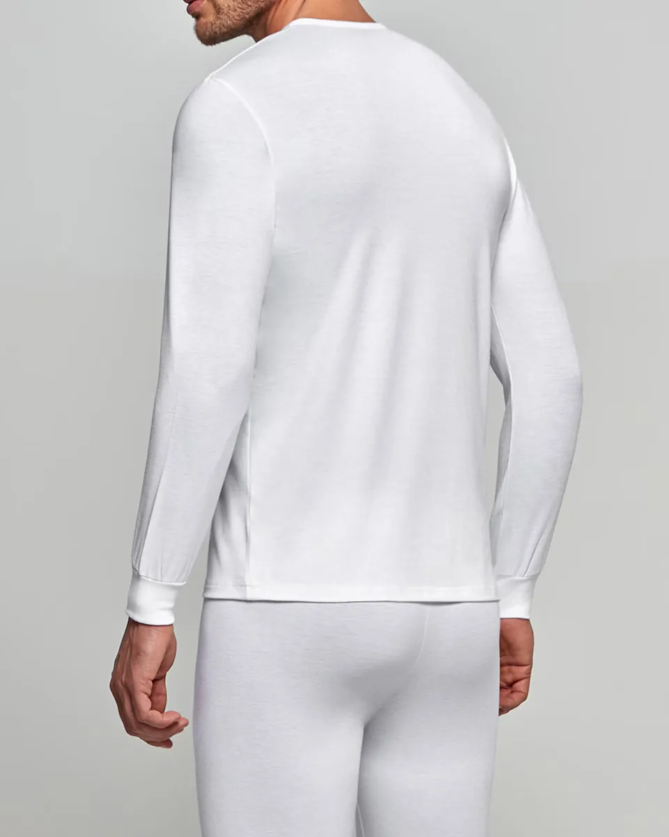 Термомайка с круглым вырезом. Он изолирует температуру тела, снижая опасность чрезмерного охлаждения, вызванного низкими температурами.