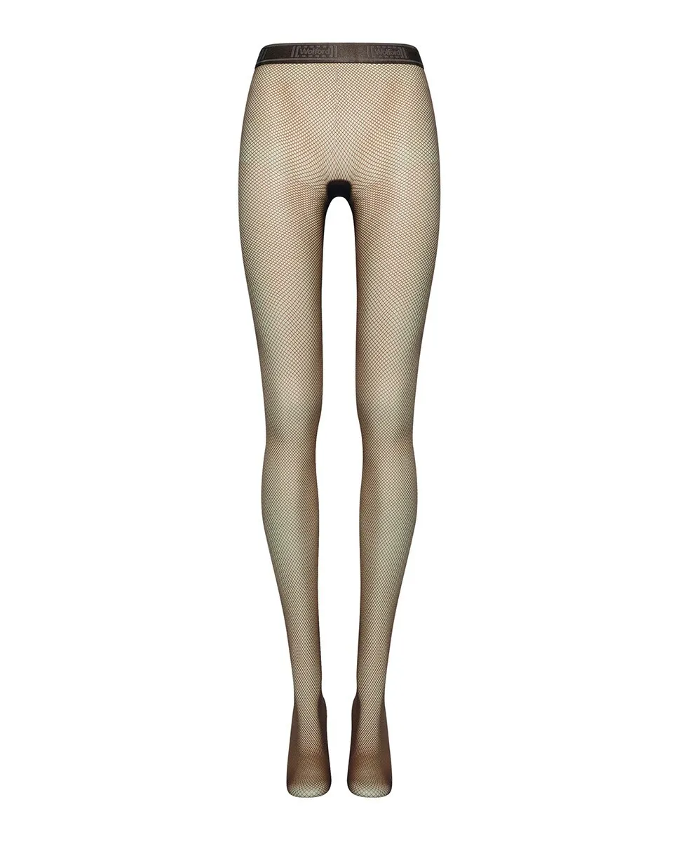 Колготки в сеточку двадцатых годовКолготки в сеточку из переработанной пряжи Econyl с небольшим рисунком в виде сеточки. Матовое покрытие придает образу элегантность и изысканность. Эластичный пояс украшен логотипом Wolford. Сетка, матовая. Небольшая сетчатая конструкция изготовлена из переработанной (экониловой) нити. Эластичный пояс с логотипом Wolford