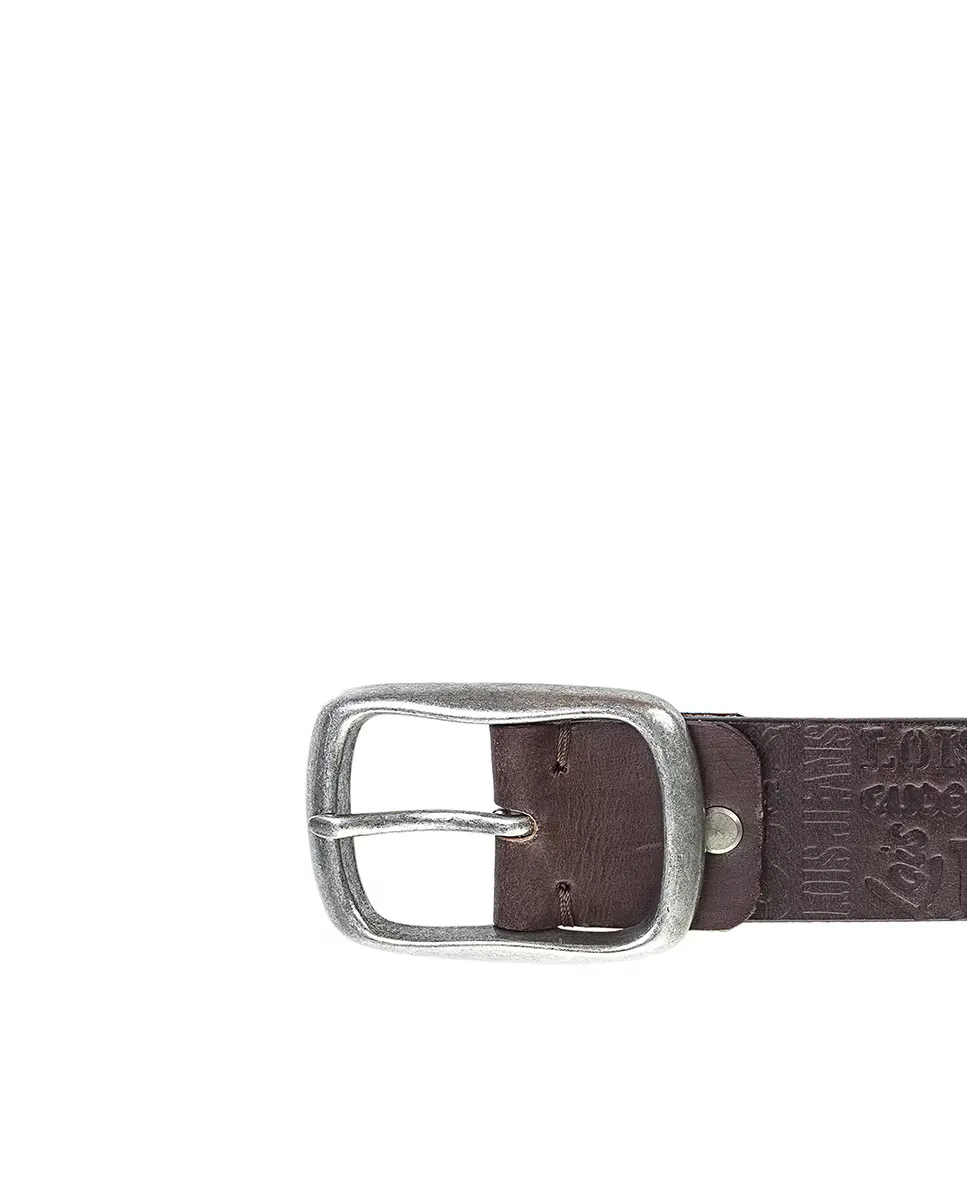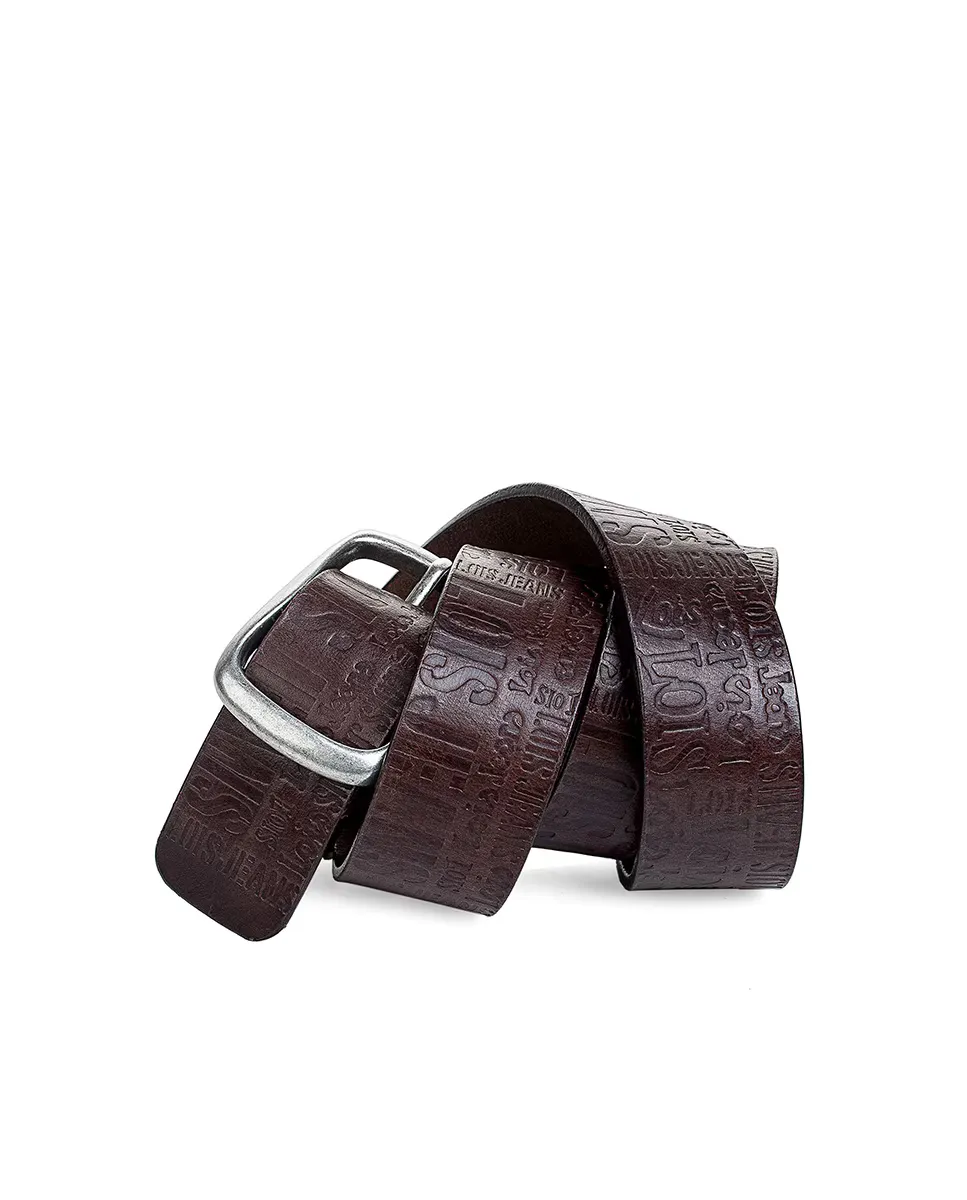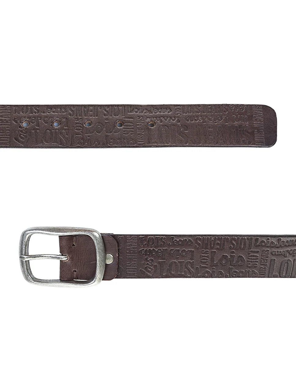 Мужской ремень из натуральной кожи от бренда Lois. Металлическая пряжка. Логотип с тиснением.
