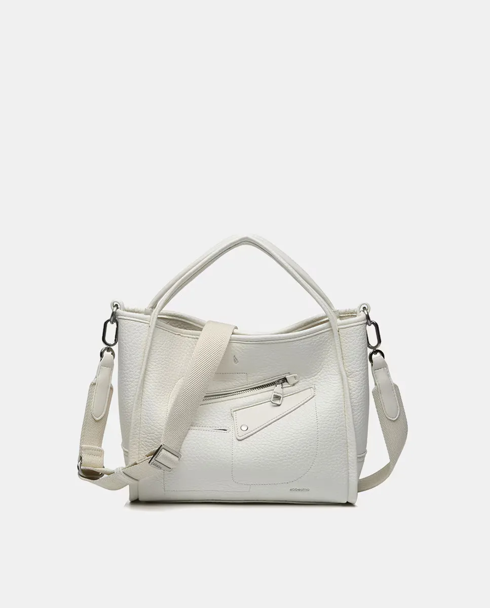 Сумочка изготовлена из переработанных материалов. Модель с несколькими карманами и простыми и минималистичными линиями, идеально подходящая для повседневного использования, которая станет базовой в весенние и летние месяцы. Его интерьер облицован и имеет отсеки-органайзеры. С внешней стороны он имеет несколько карманов, видимые декоративные швы и застежку-молнию. На лицевой стороне выгравирован логотип Abbacino.