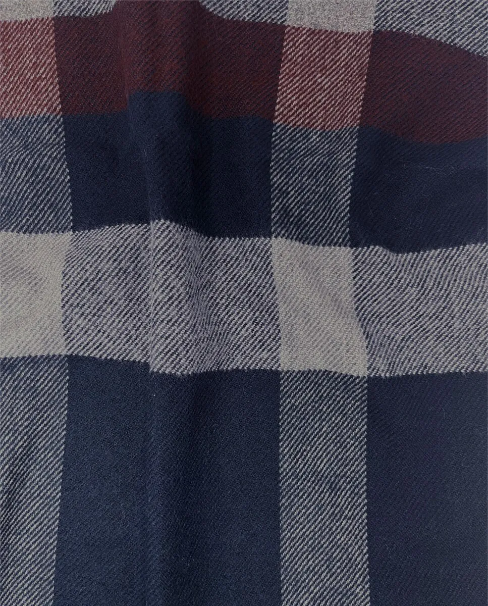 Мужской темно-синий аульный шарф с клетчатым принтом, размеры 45х180 см.