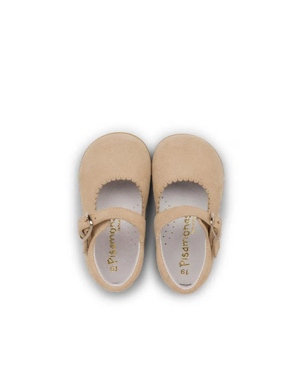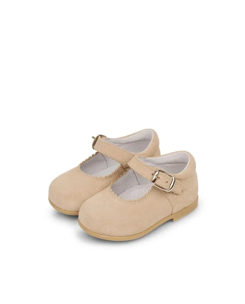 Незаменимая Мэри Джейн для девочек выполнена из спилок. С застежкой на пряжке для идеальной посадки и предотвращения их слишком легкого снятия. С усиленным носком и пяткой и нескользящей резиновой подошвой. Идеально подходит для первых шагов, это элегантная и в то же время очень универсальная обувь для любого среднесезонного дня. Очень подходит для осени-зимы-весны.